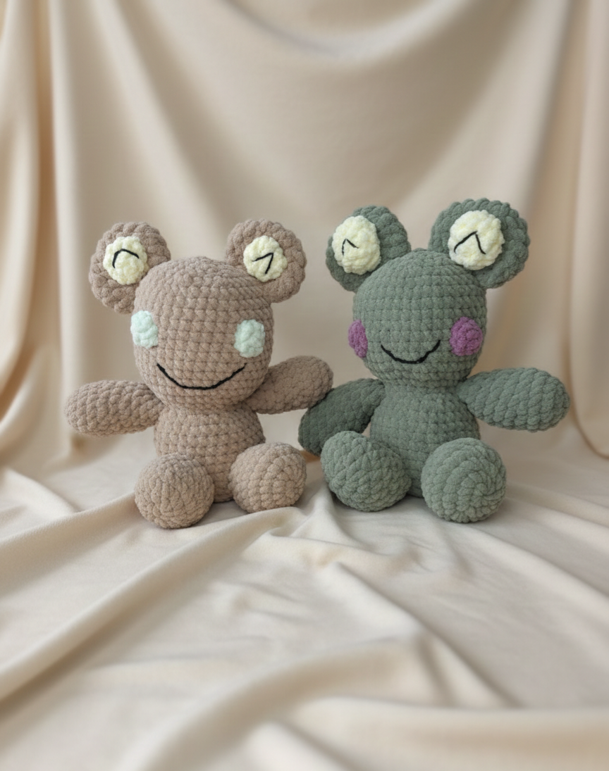 Chaque grenouille est crochetée avec le plus grand soin dans mon atelier :