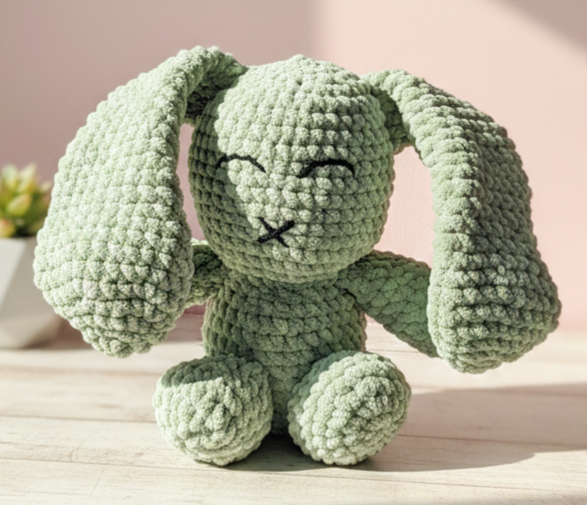 Craquez pour ce doudou lapin au crochet, entièrement fait main avec amour. Sa texture ultra-moelleuse en fil velours et ses grandes oreilles tombantes en font le doudou idéal pour les petits comme pour les grands. Avec son expression paisible et ses couleurs douces, il apporte une touche de sérénité et de tendresse à n’importe quelle pièce.