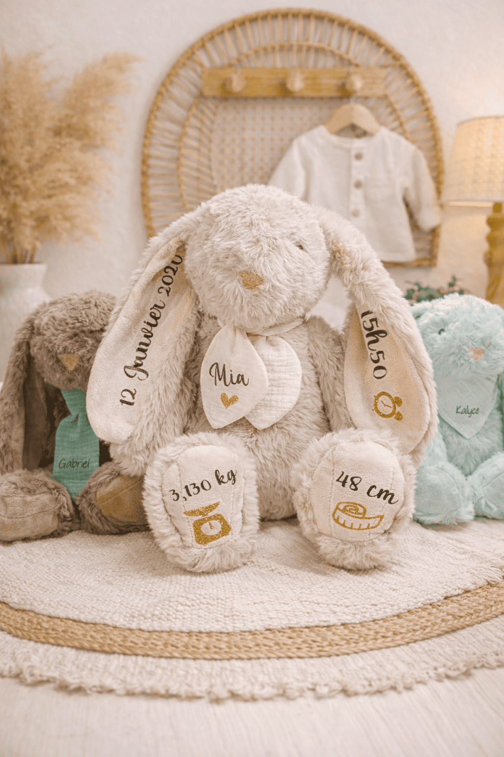 Chaque peluche lapin personnalisée est réalisée avec soin pour créer un objet à la fois tendre, décoratif et chargé d’émotion. C’est le cadeau idéal pour célébrer une naissance, une baby shower ou un baptême.