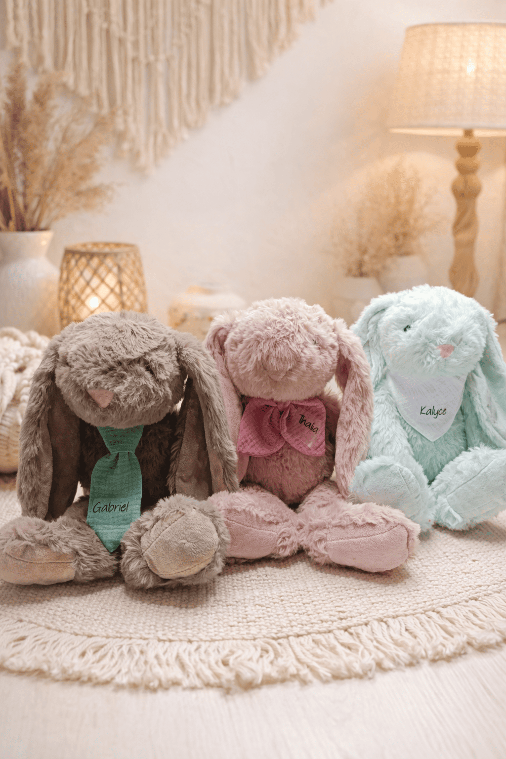 Nos lapins sont disponibles en plusieurs coloris doux et tendance, parfaits pour s’adapter à tous les univers de bébé.