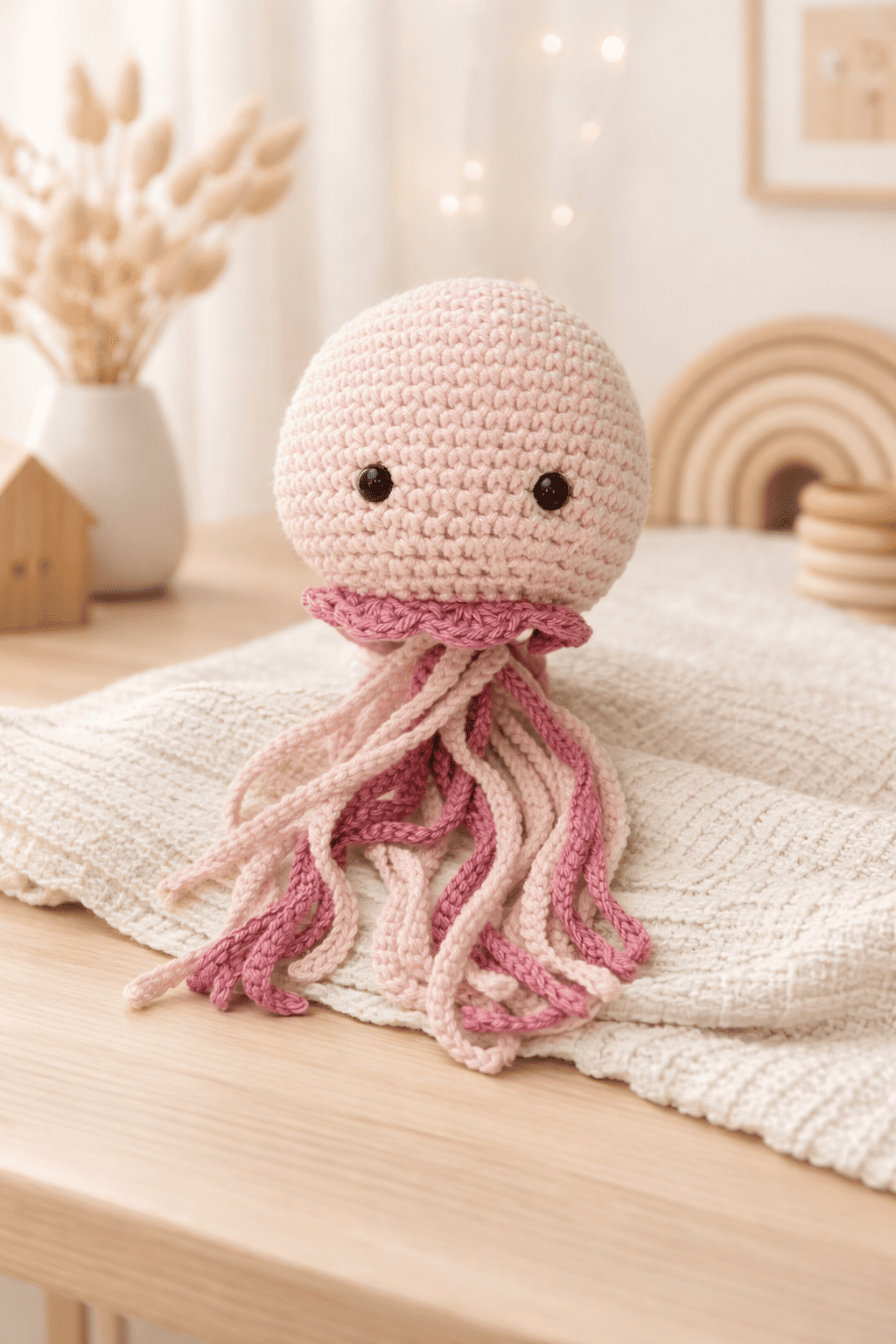 Doudou pieuvre en coton rose