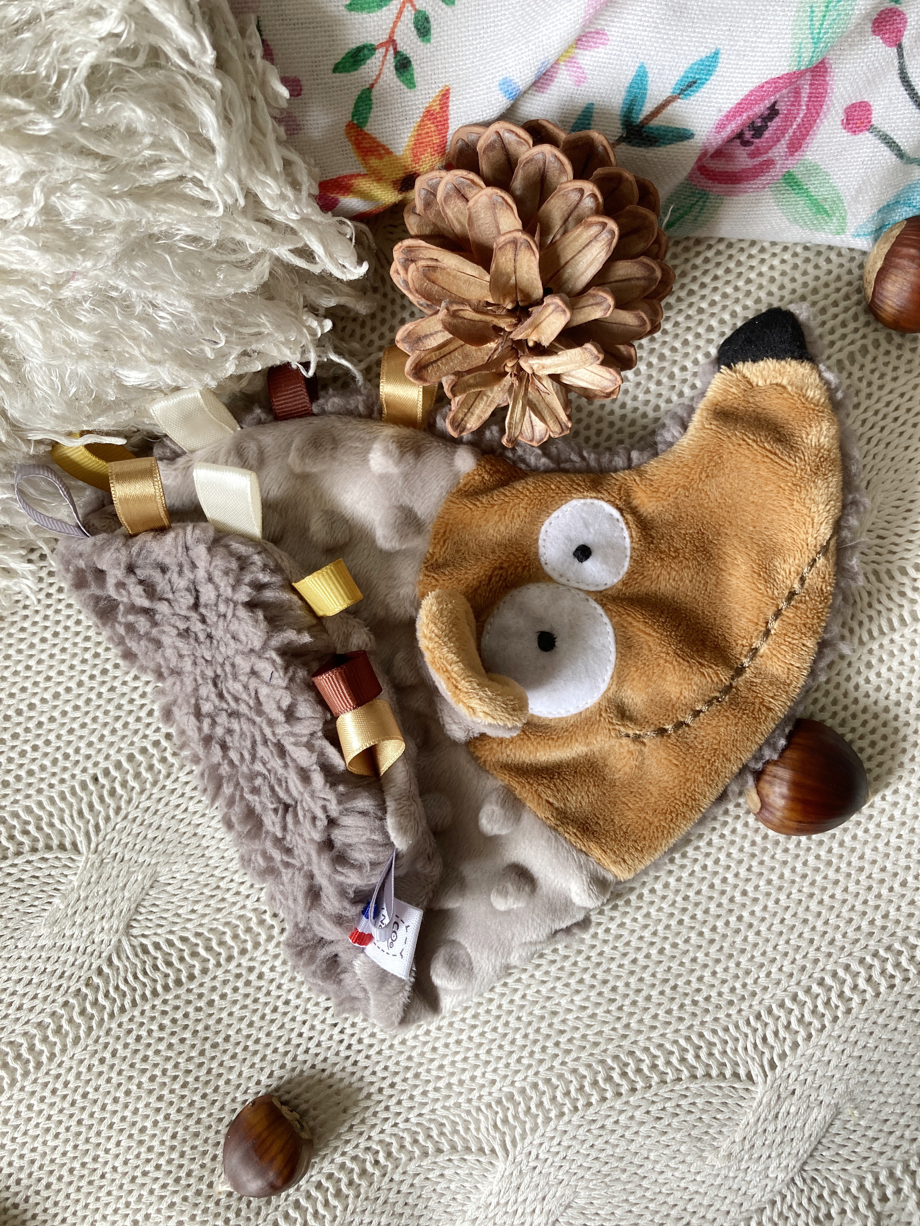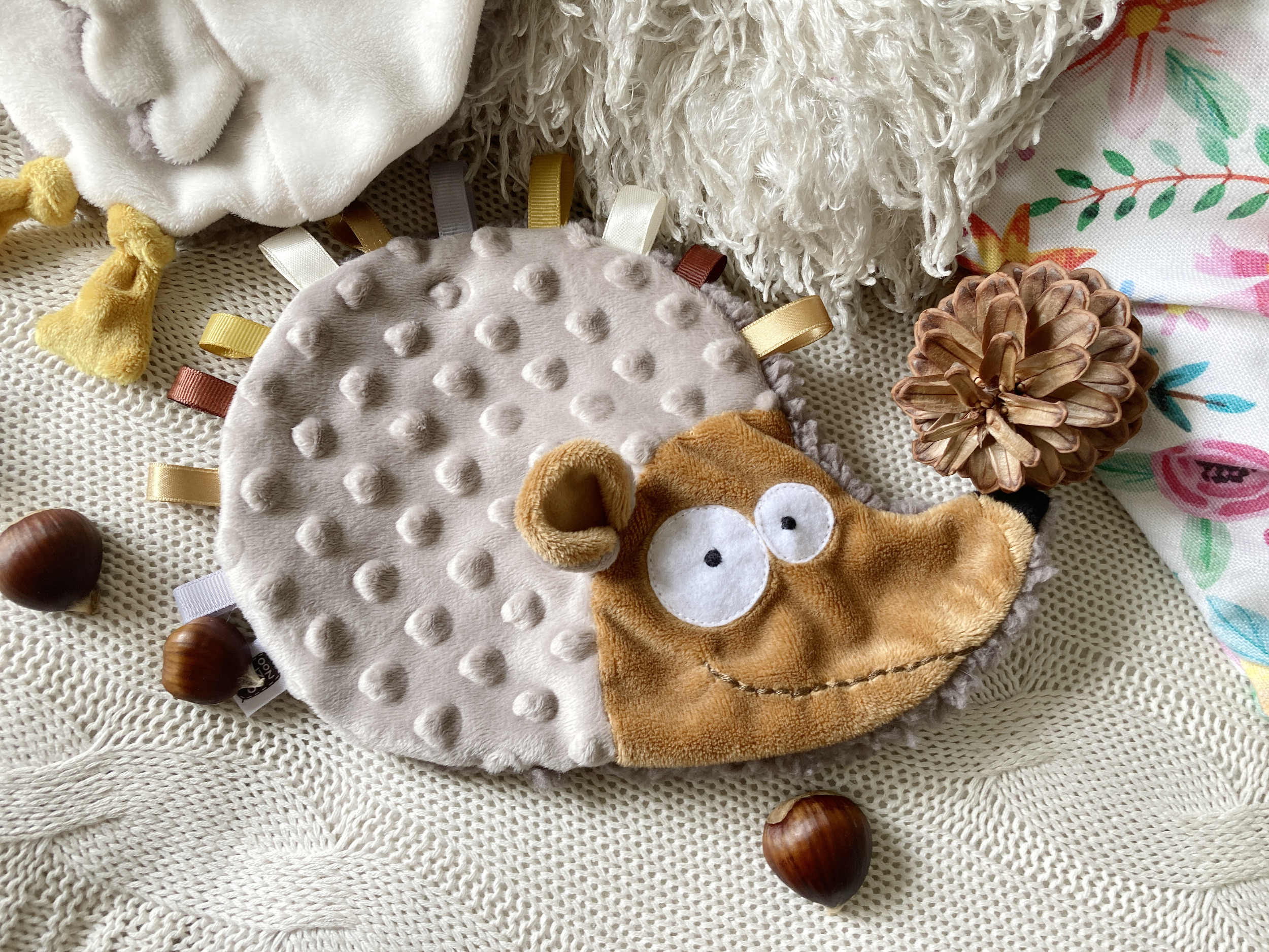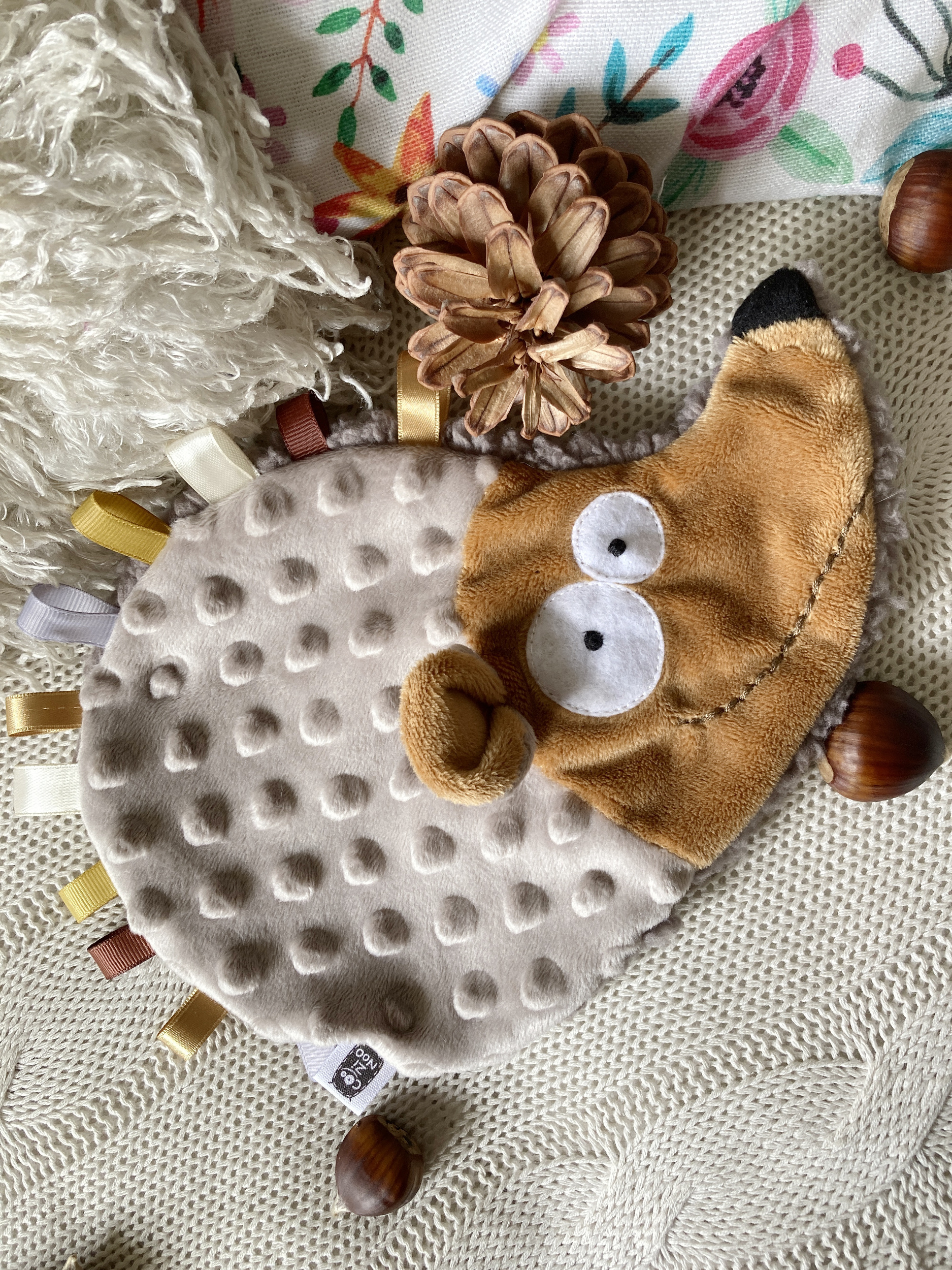 Doudou plat hérisson personnalisable. Couleur au choix. Cadeau pour bébé, liste de naissance. Doudou fait main.