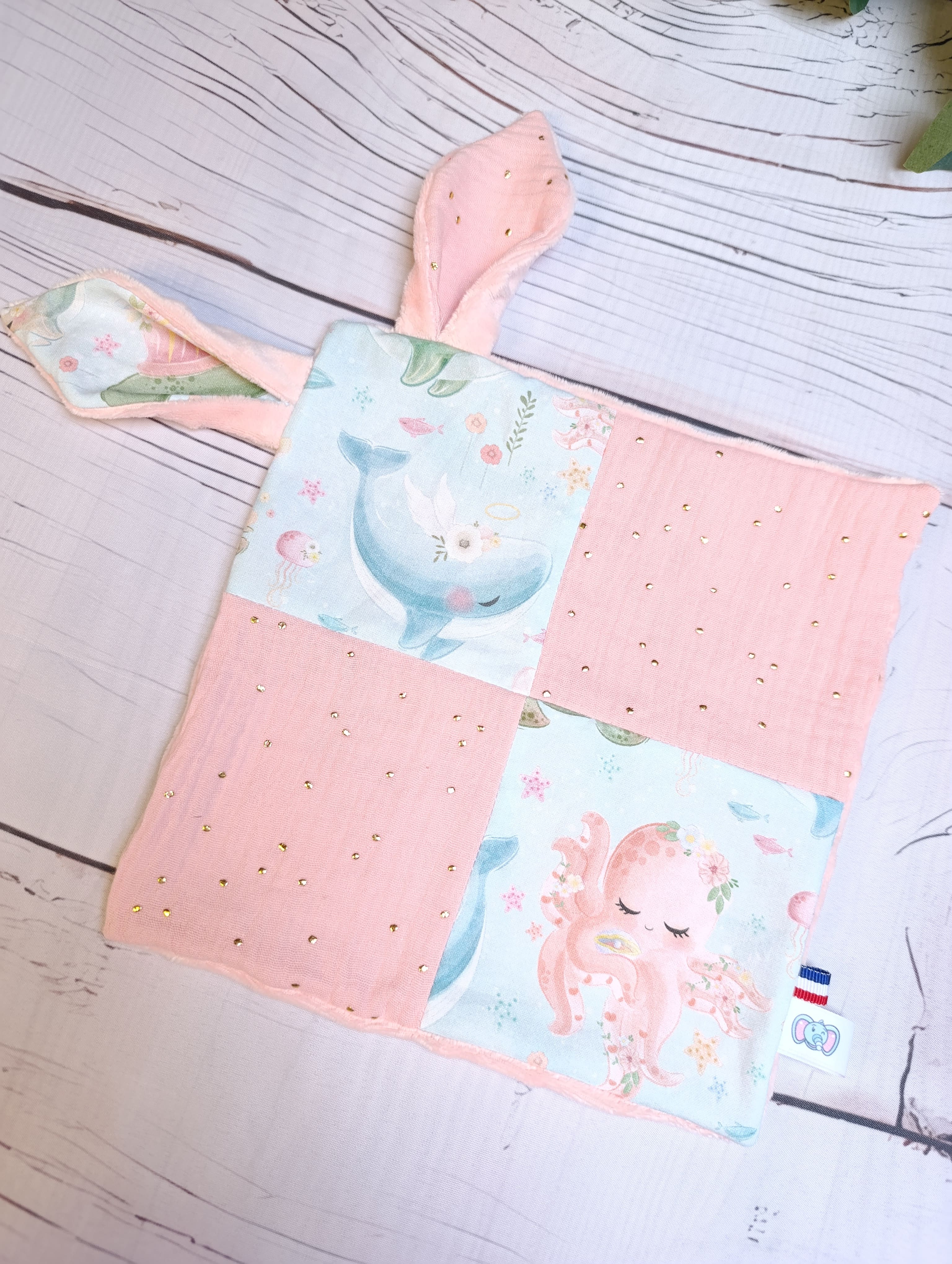 Nos doudous plats sont fabriqués en coton et minky/ sherpa/ polaire doudou. Ils sont doux au toucher et parfaits pour les câlins.