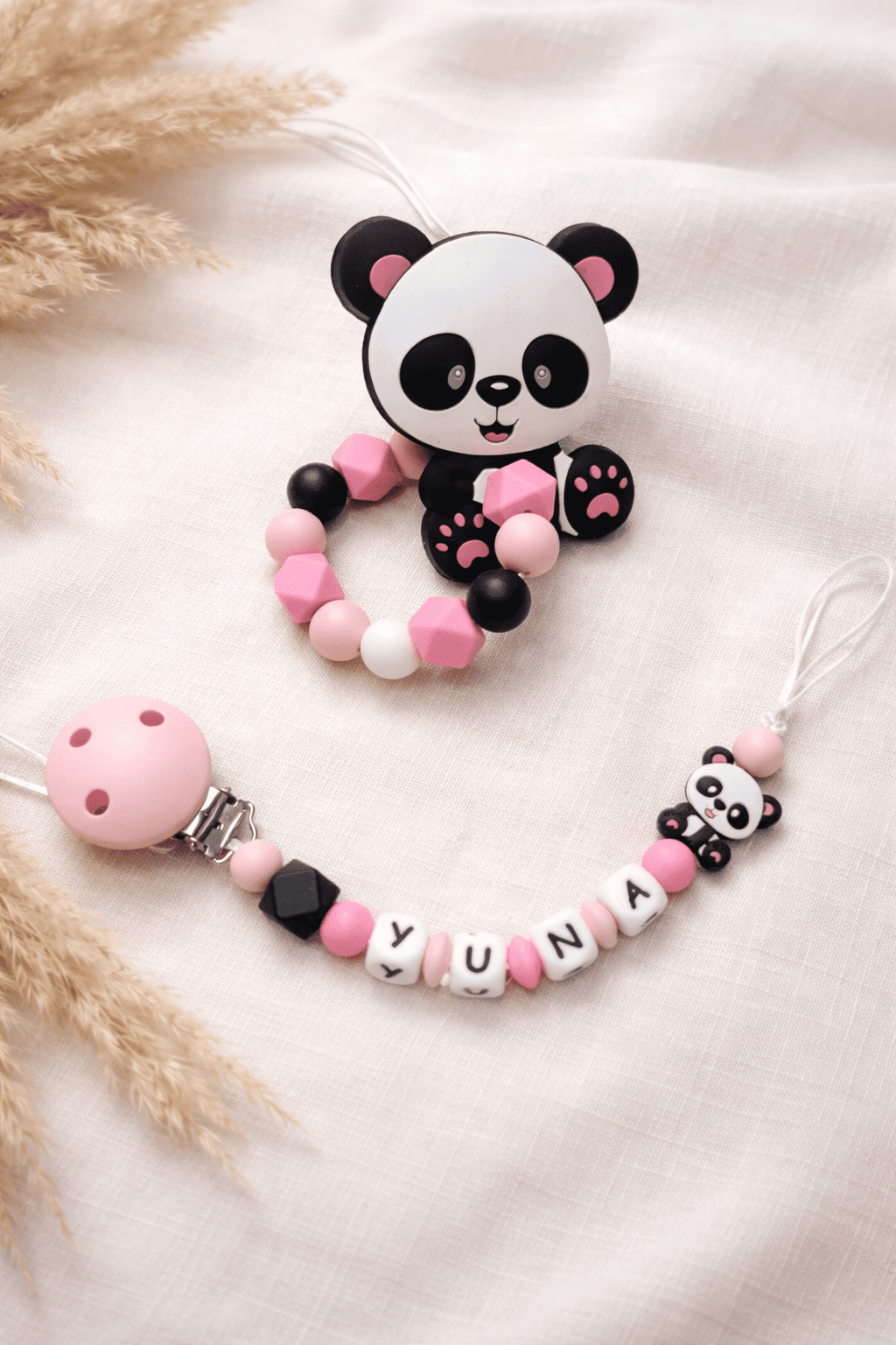 • Le duo comprend une attache tétine avec prénom et un anneau de dentition sans prénom.