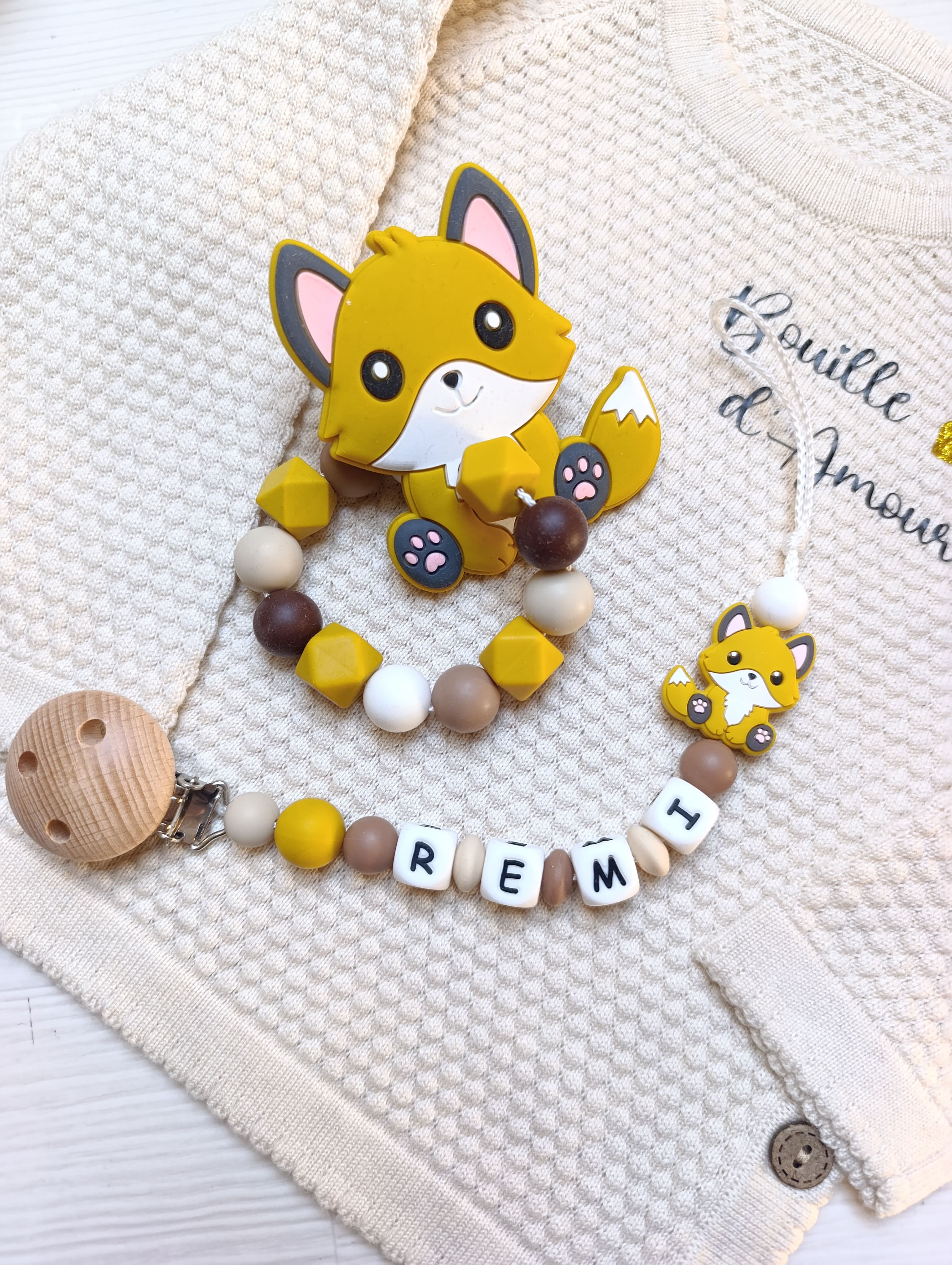 • Le duo comprend une attache tétine avec prénom et un anneau de dentition sans prénom.