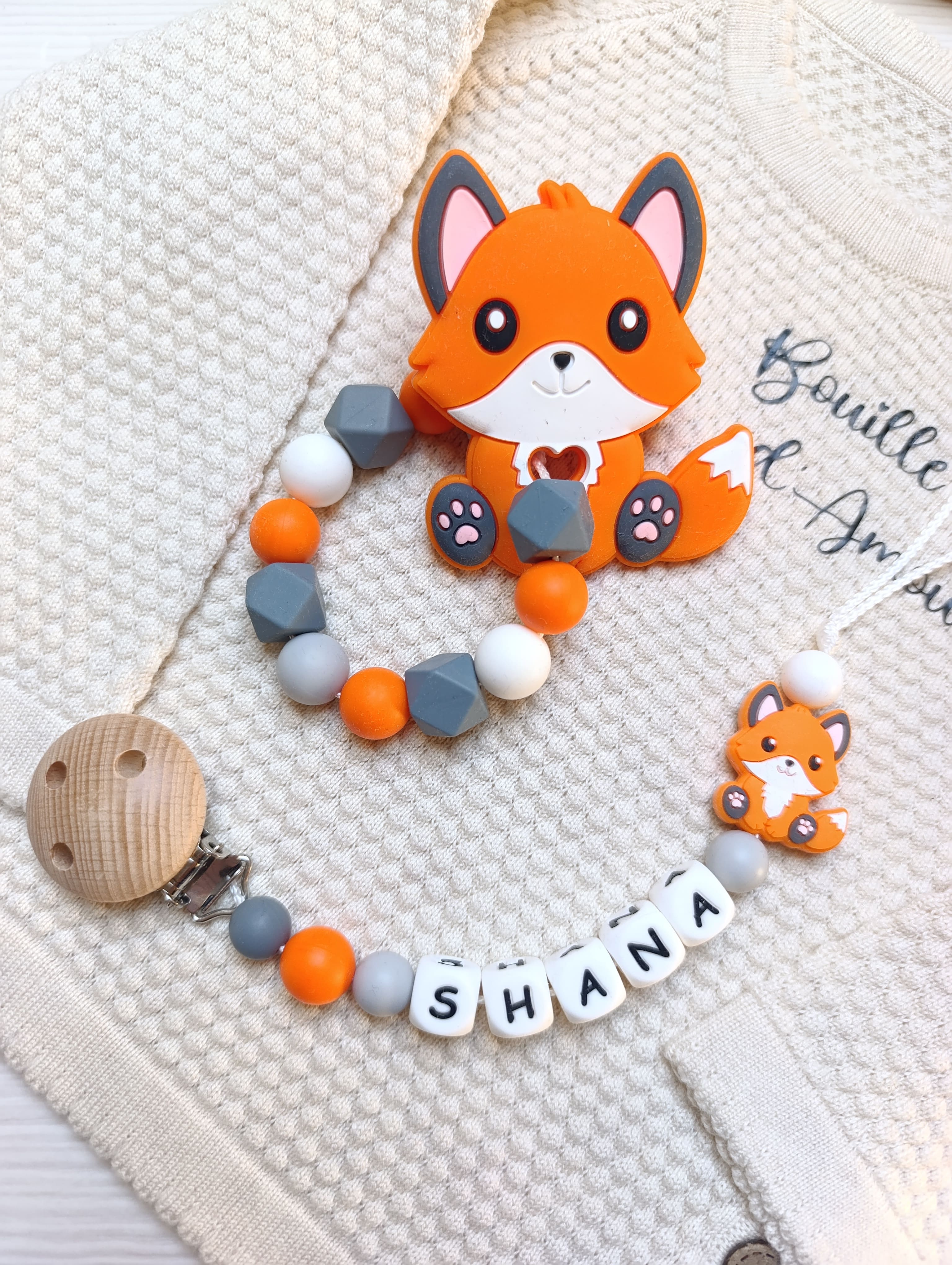 • Le duo comprend une attache tétine avec prénom et un anneau de dentition sans prénom.