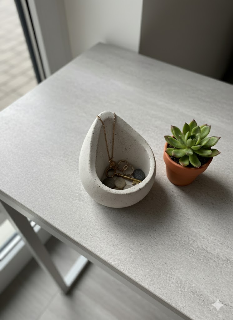 notre élégant contenant en jesmonite, une pièce unique fabriquée