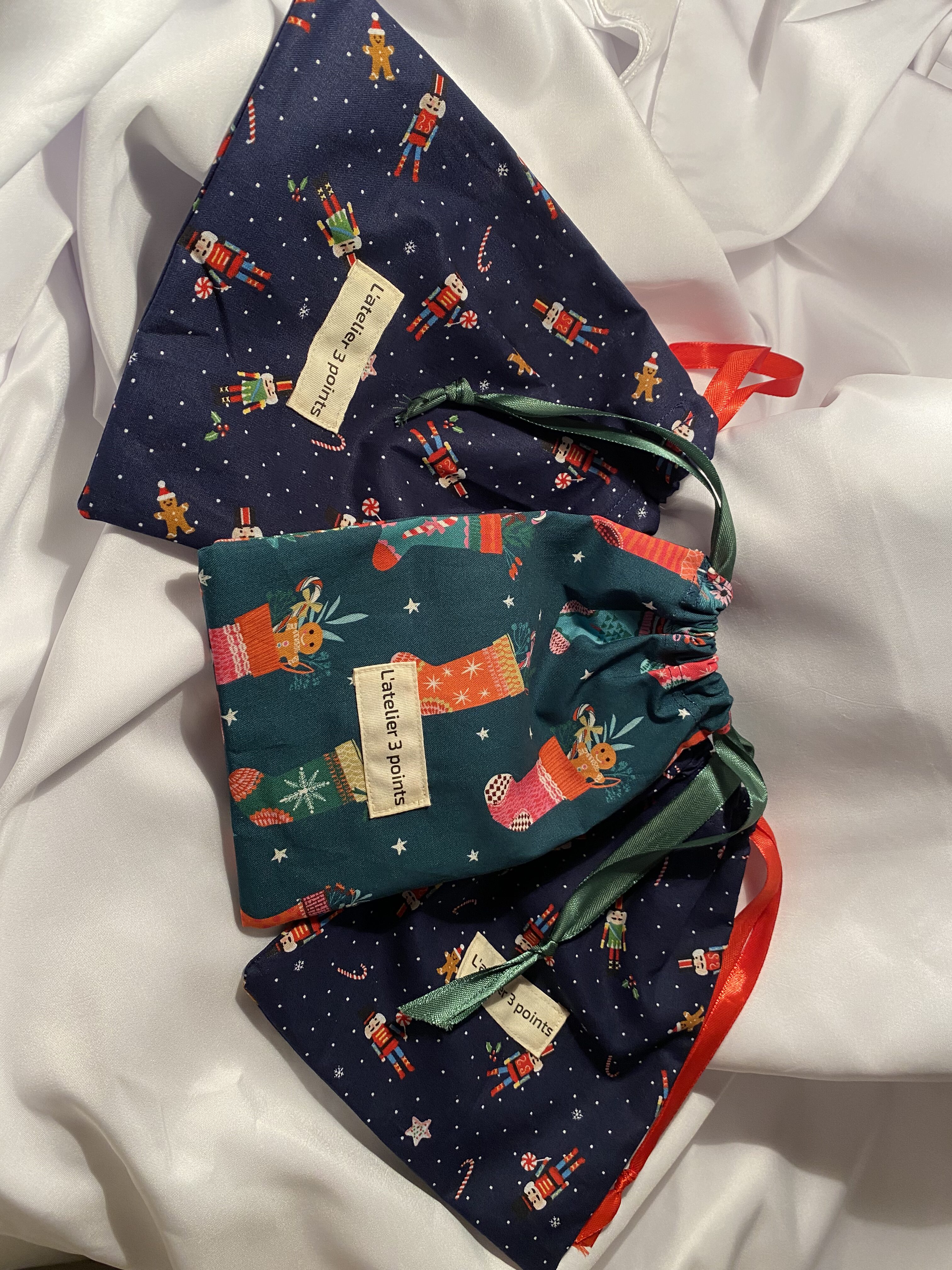 Lot de 3 petits pochons réutilisables.