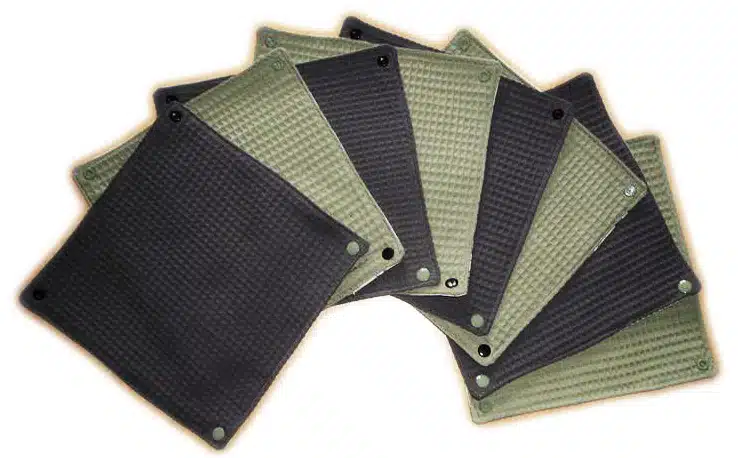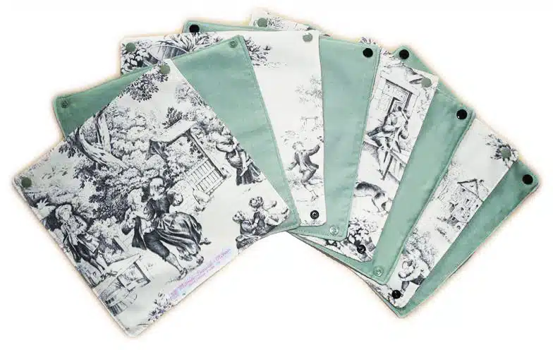 PARTICULARITES : Composé de 8 feuilles 100% coton doublées éponge nid d’abeille très absorbante. Se fixent entre-elles par des pressions. Réutilisable à volonté et de longue durée.