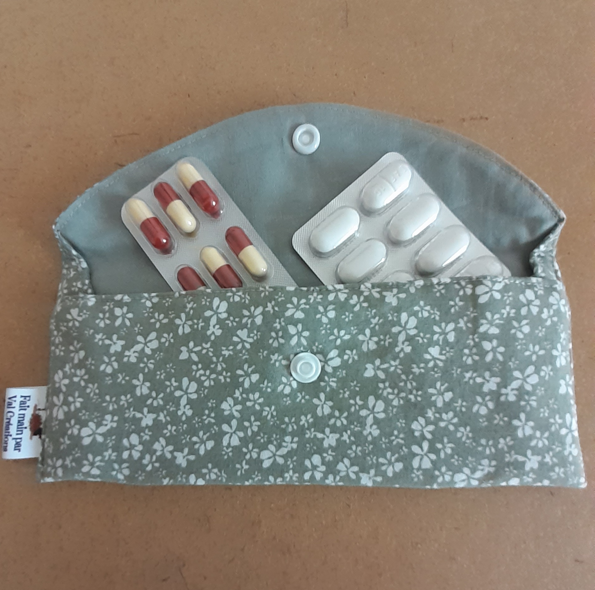Cet étui artisanal est conçu pour protéger des lunettes ou ranger vos médicaments. Il est de forme rectangulaire avec un rabat supérieur arrondi qui se ferme sur le devant.