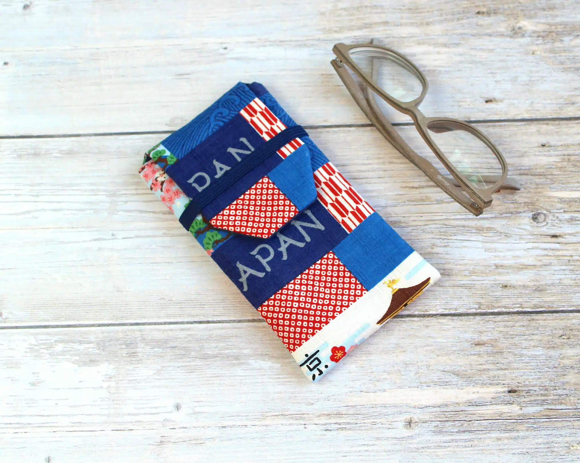 Pochette à lunettes en tissu coton japonais structuré. Accessoire japonais à lunettes pratique pour le rangement et protection de vos lunettes de vue et de soleil. Housse pour homme et pour femme.