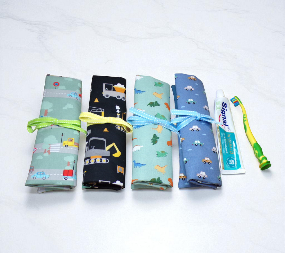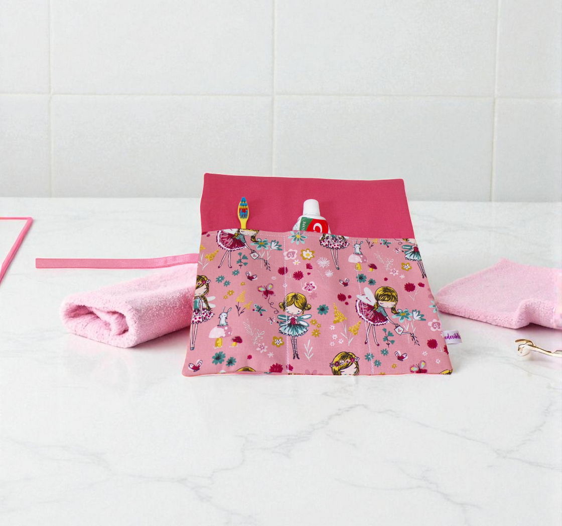 Étui, pochette pour ranger la brosse à dents, le dentifrice et une serviette, facile à glisser et emporter lors de déplacements, pour les vacances, les week-ends ou les séjours chez les grands parents.