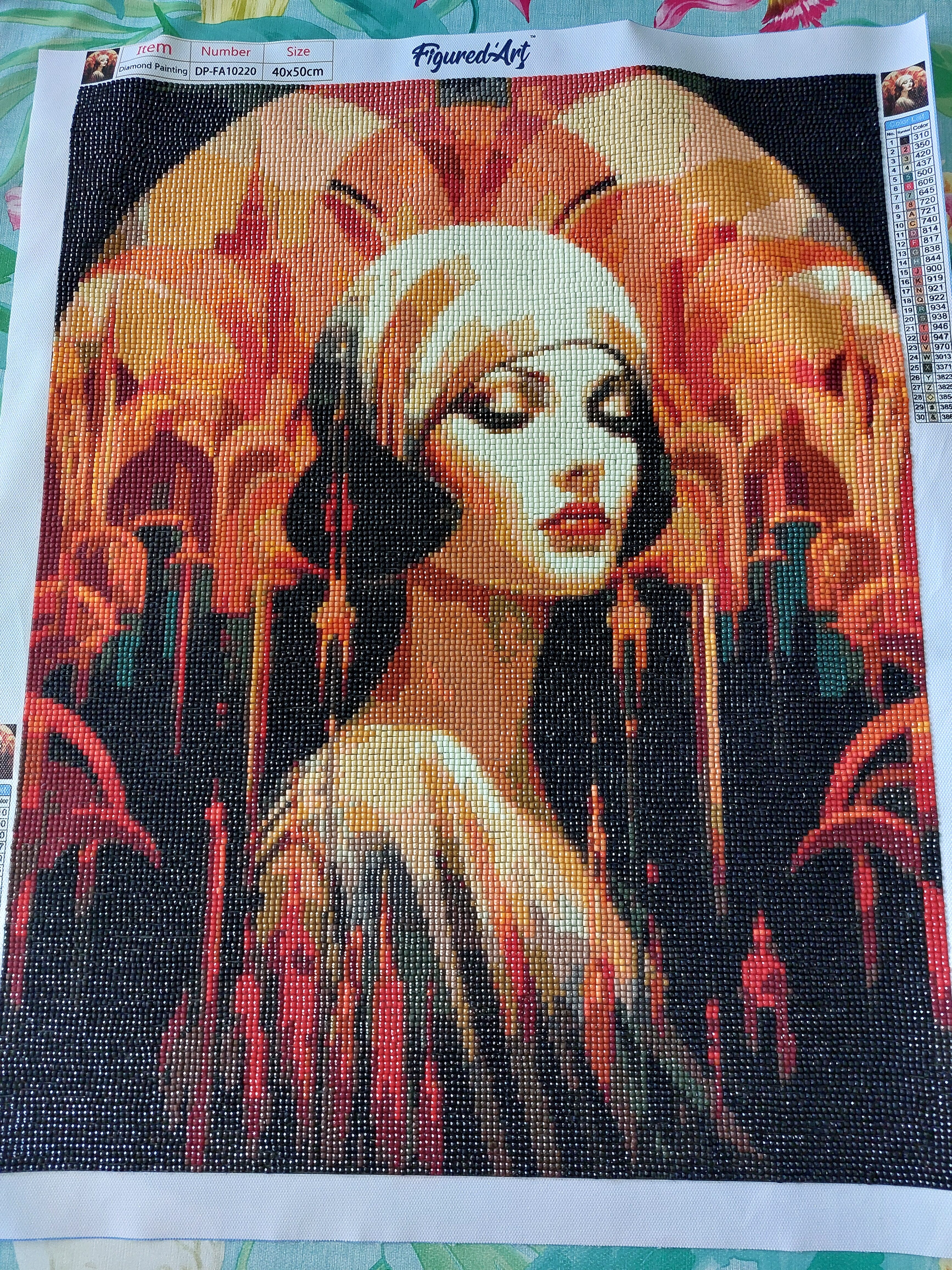 Apportez une touche d’élégance et de raffinement à votre intérieur avec cette œuvre en diamond painting représentant une femme au style Art Déco.