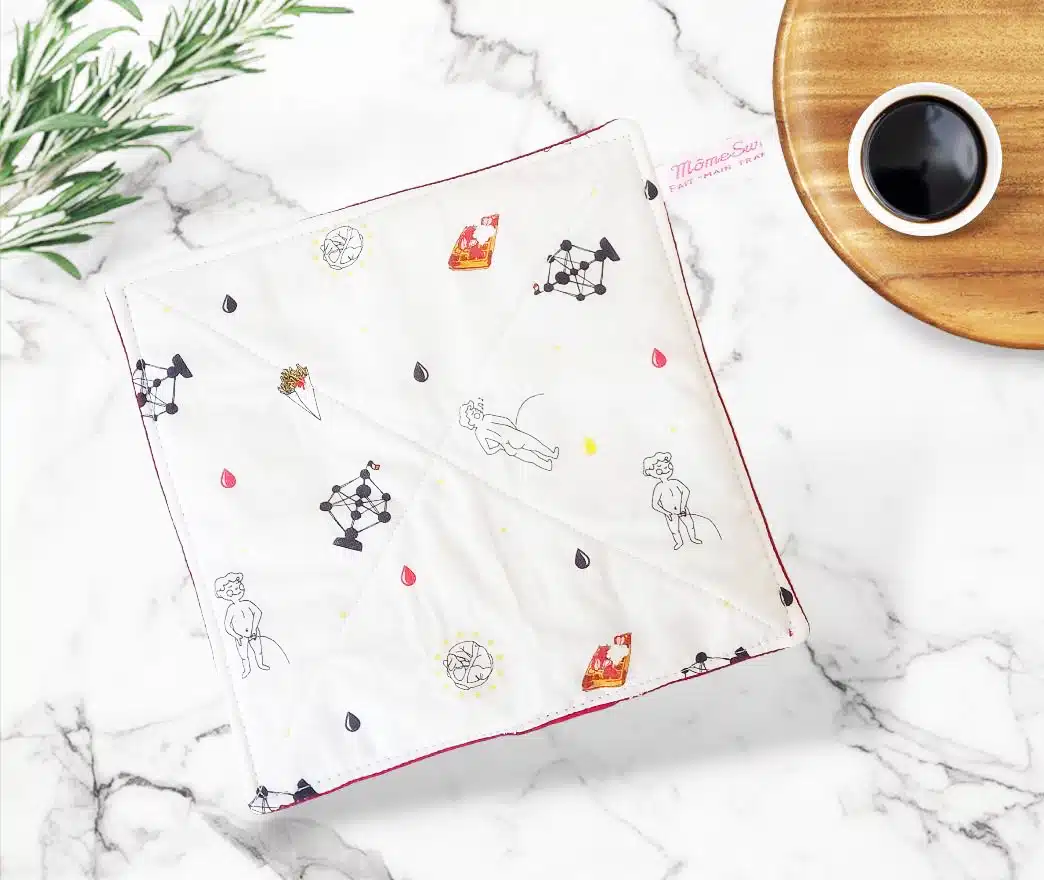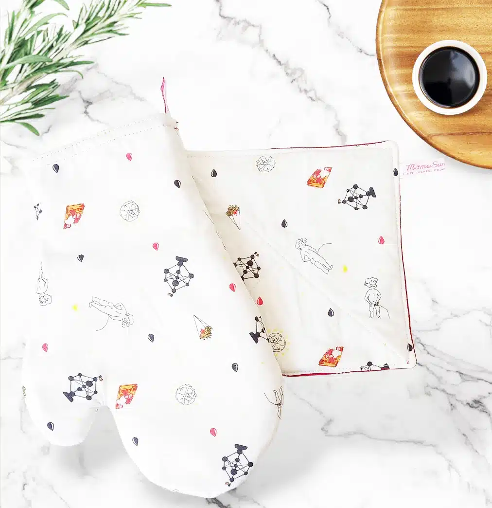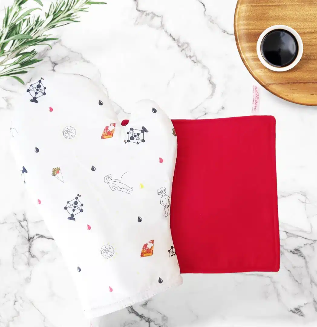 PARTICULARITES : Confectionnés en coton doublé d’un isolant thermique en molleton de coton, ils sont résistants à la chaleur. L’étiquette servira de ganse pour suspendre vos deux accessoires.
