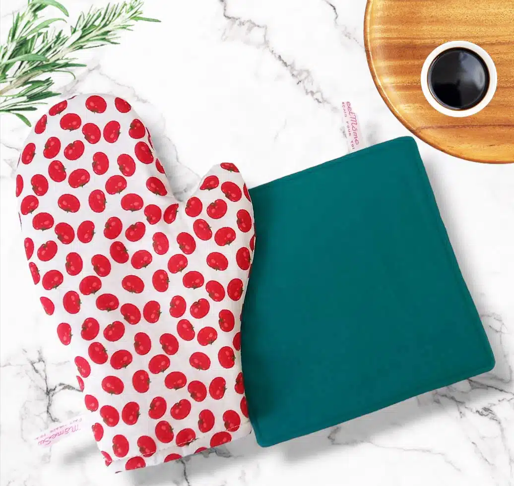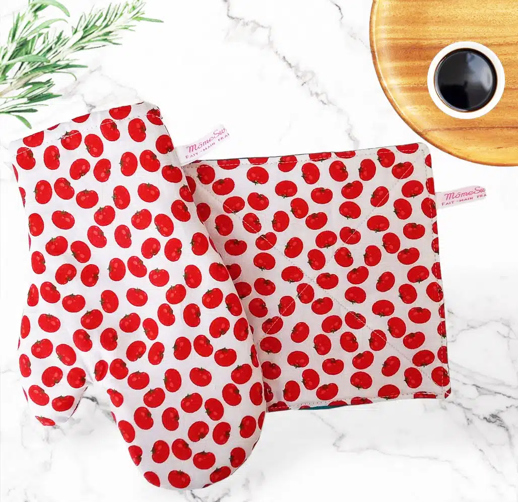 PARTICULARITES : Confectionnés en coton doublé d’un isolant thermique en molleton de coton, ils sont résistants à la chaleur. L’étiquette servira de ganse pour suspendre vos deux accessoires.