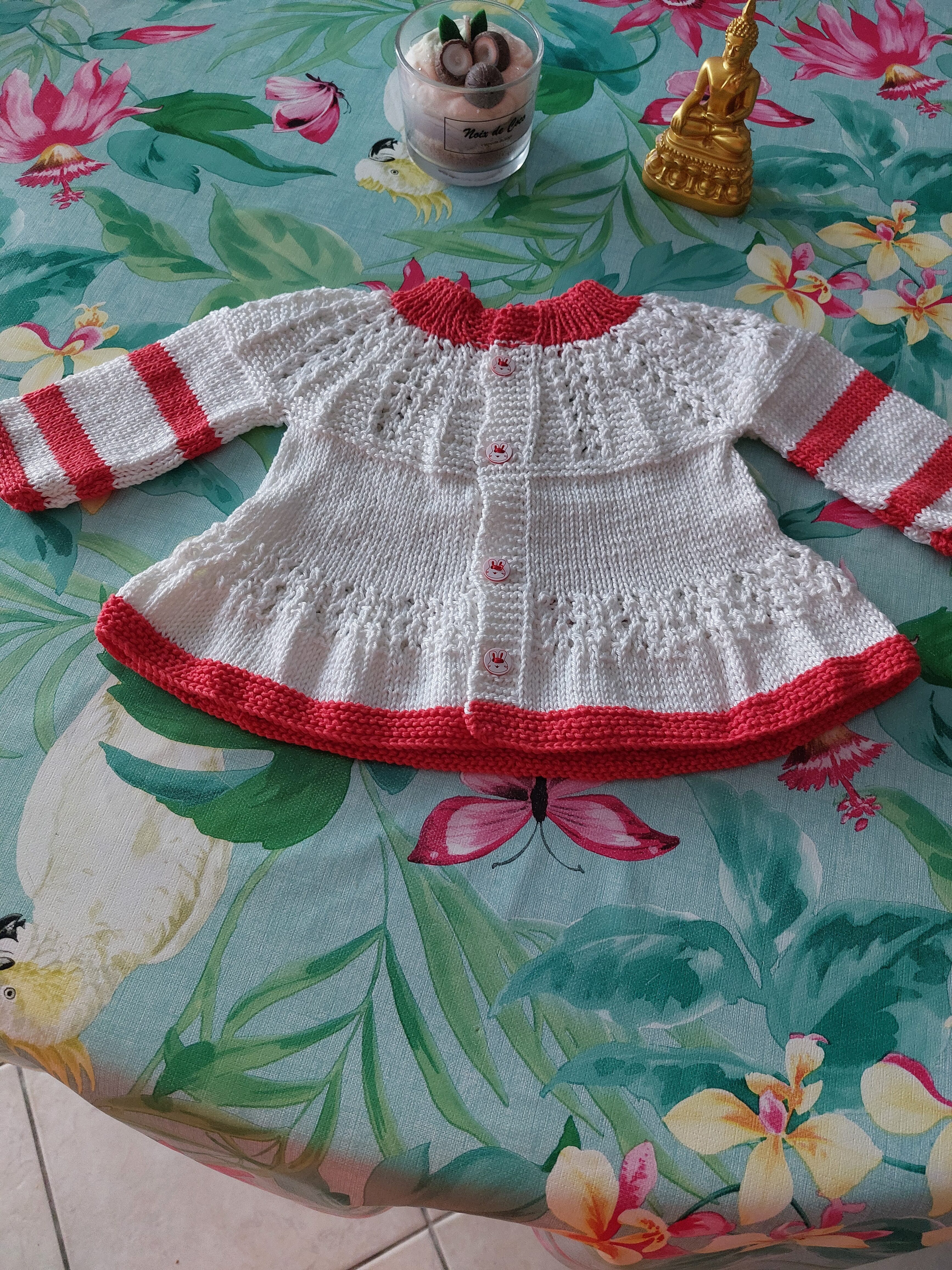 gilet tricoté aux aiguilles dans un fil coton très doux pour la peau de bébé