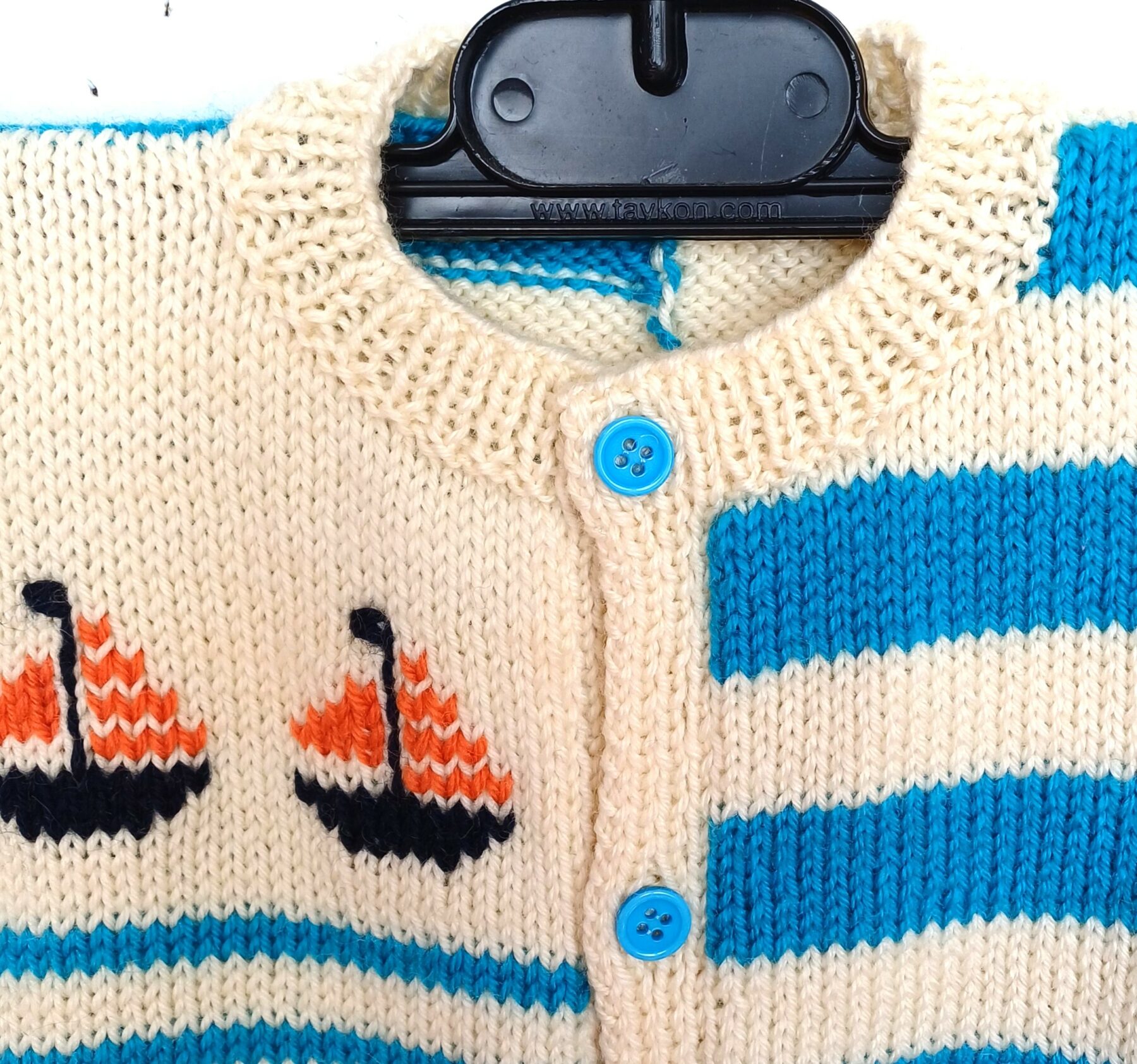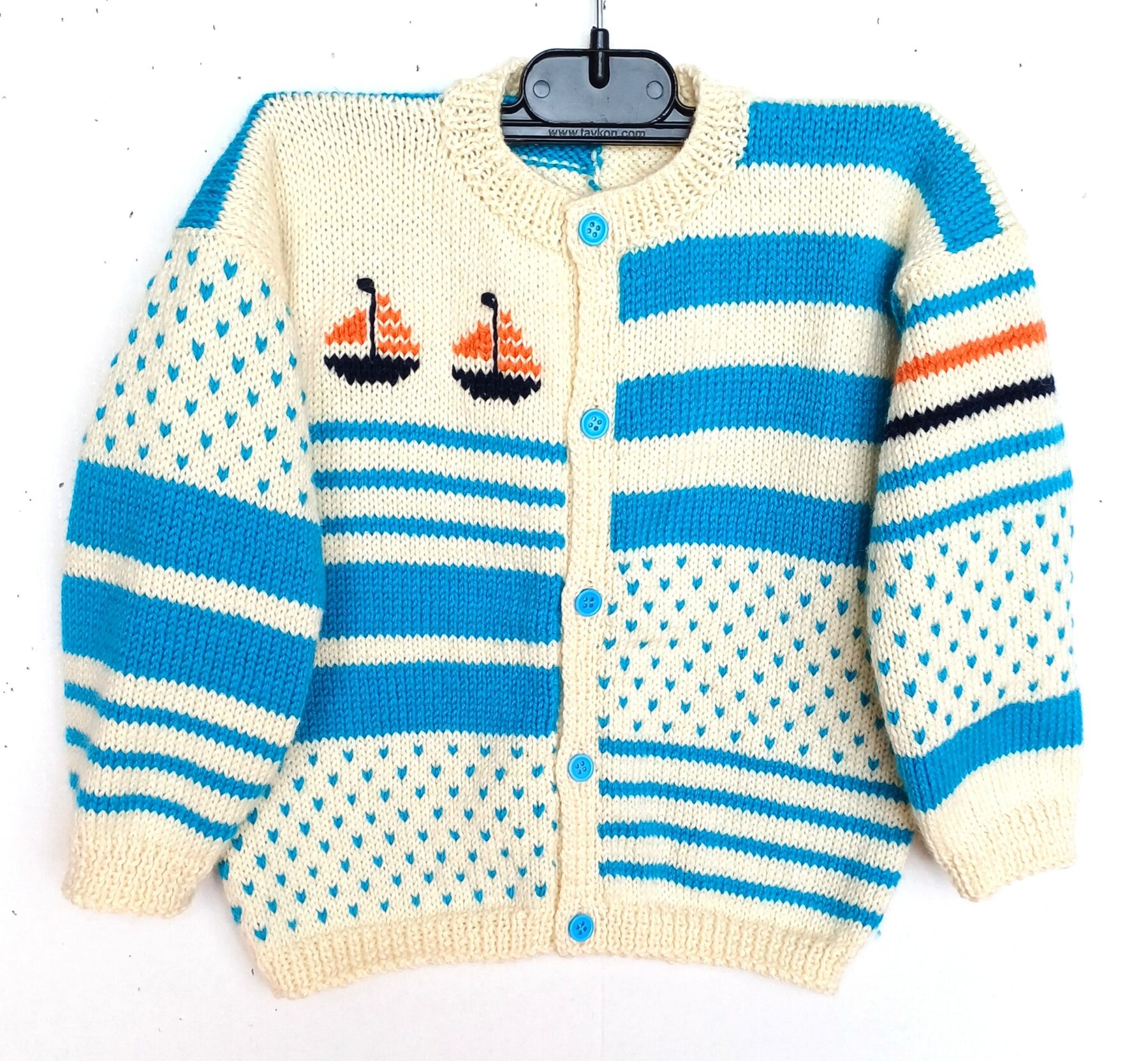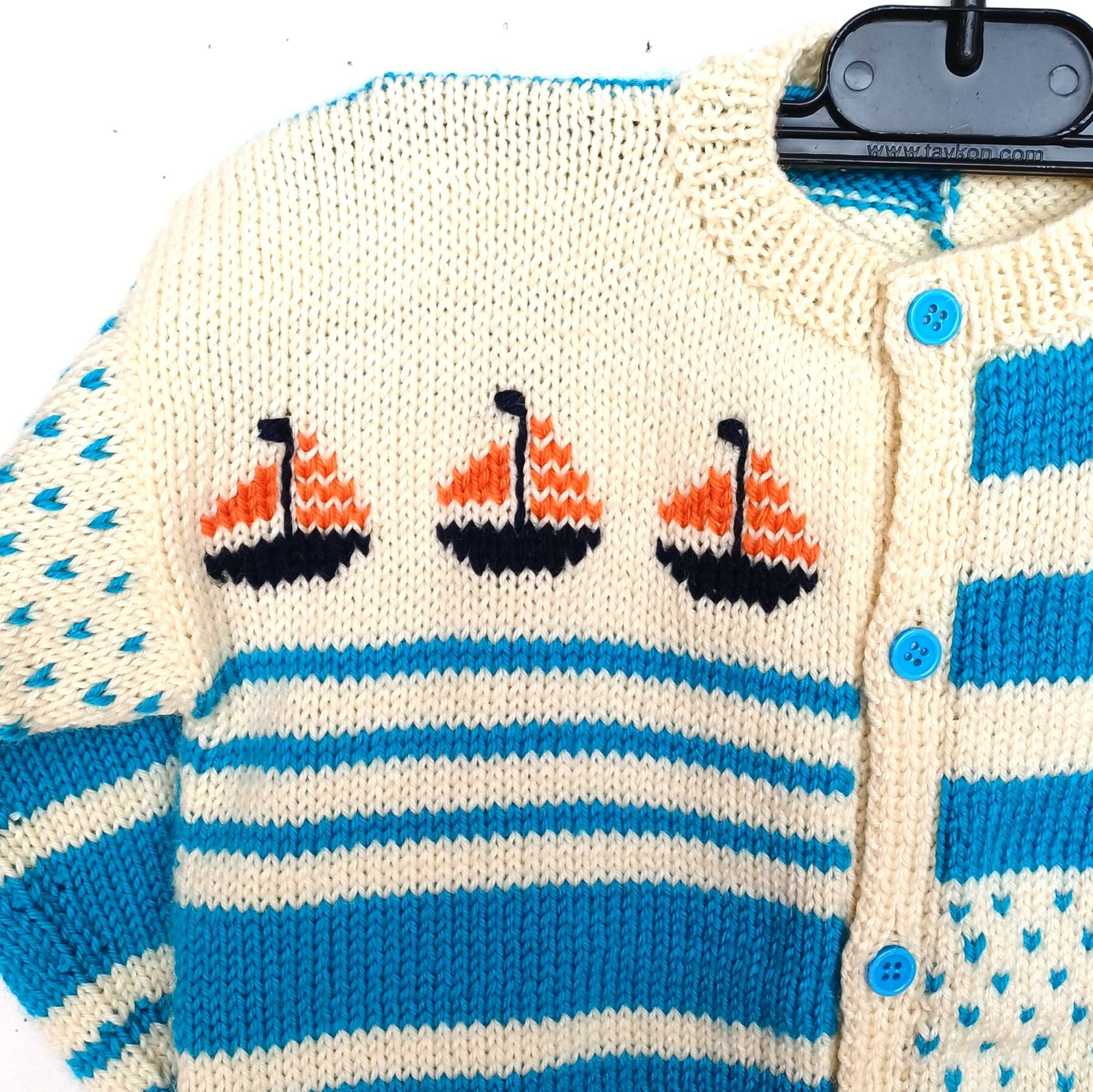 Gilet tricoté à la main, rayé avec des bateaux, en laine, pour un petit moussaillon