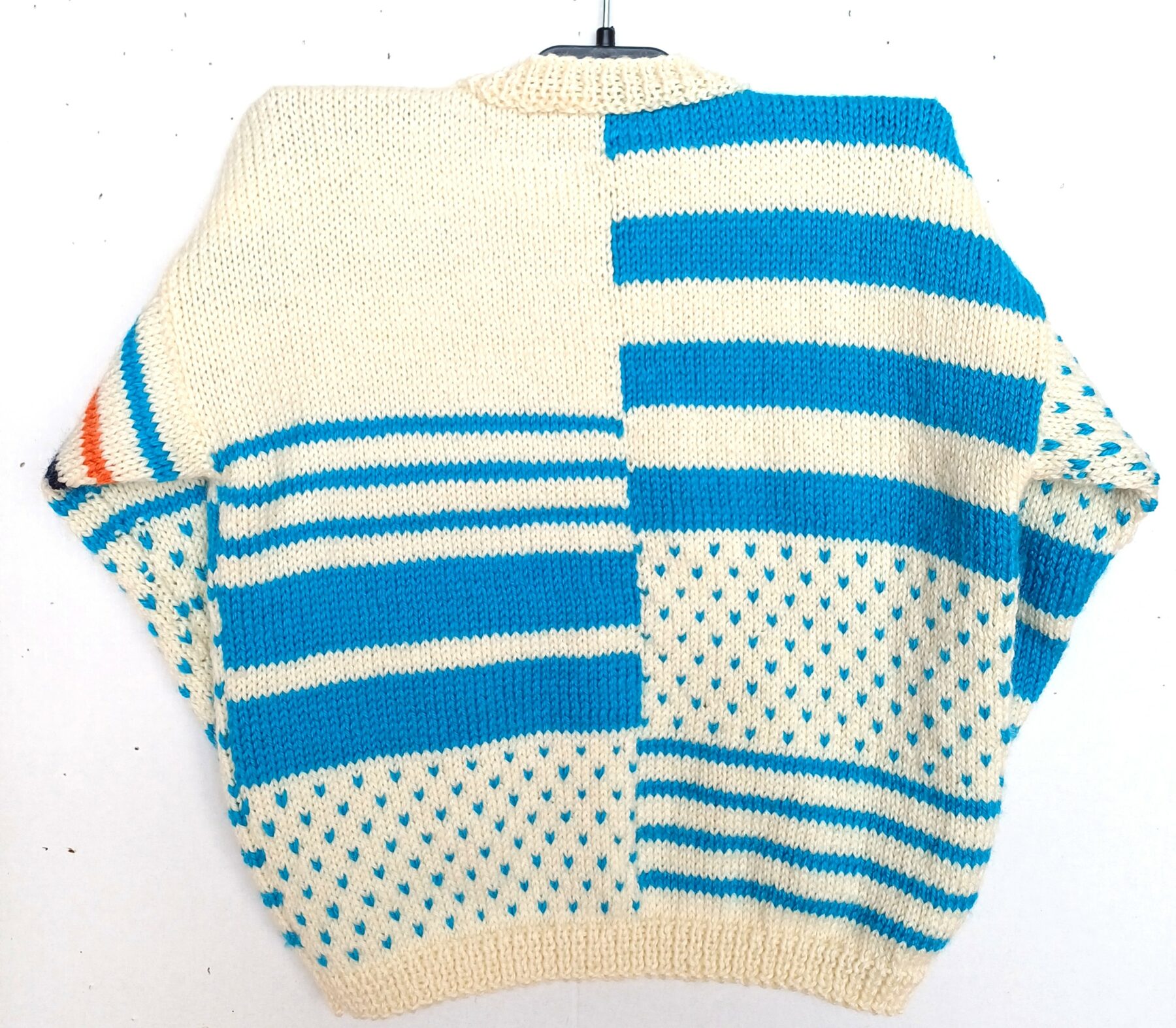 Ce pull est tricoté entièrement à la main avec des finitions soignées, et avec un fil de fabrication française