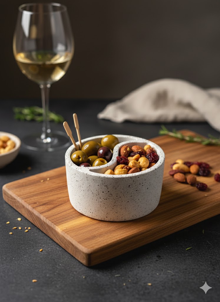 de snacks secs (olives, fruits secs, noix) lors de vos réceptions.