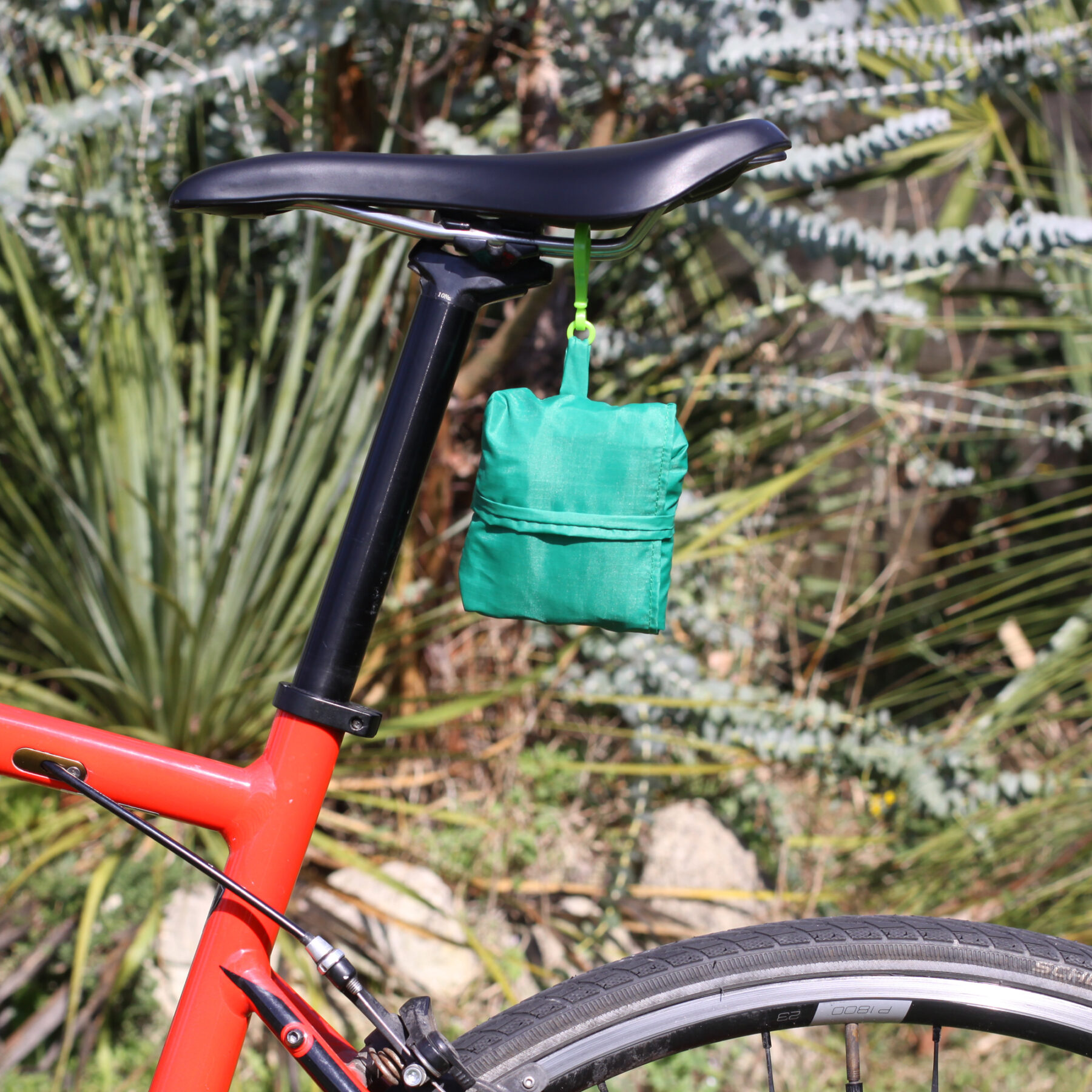 Pratique, la housse de selle de vélo protège de la pluie. Et une fois plié, il suffit de l’attacher sur votre vélo dans de le ranger dans vos affaire. Conçue dans une démarche éco-responsable.
