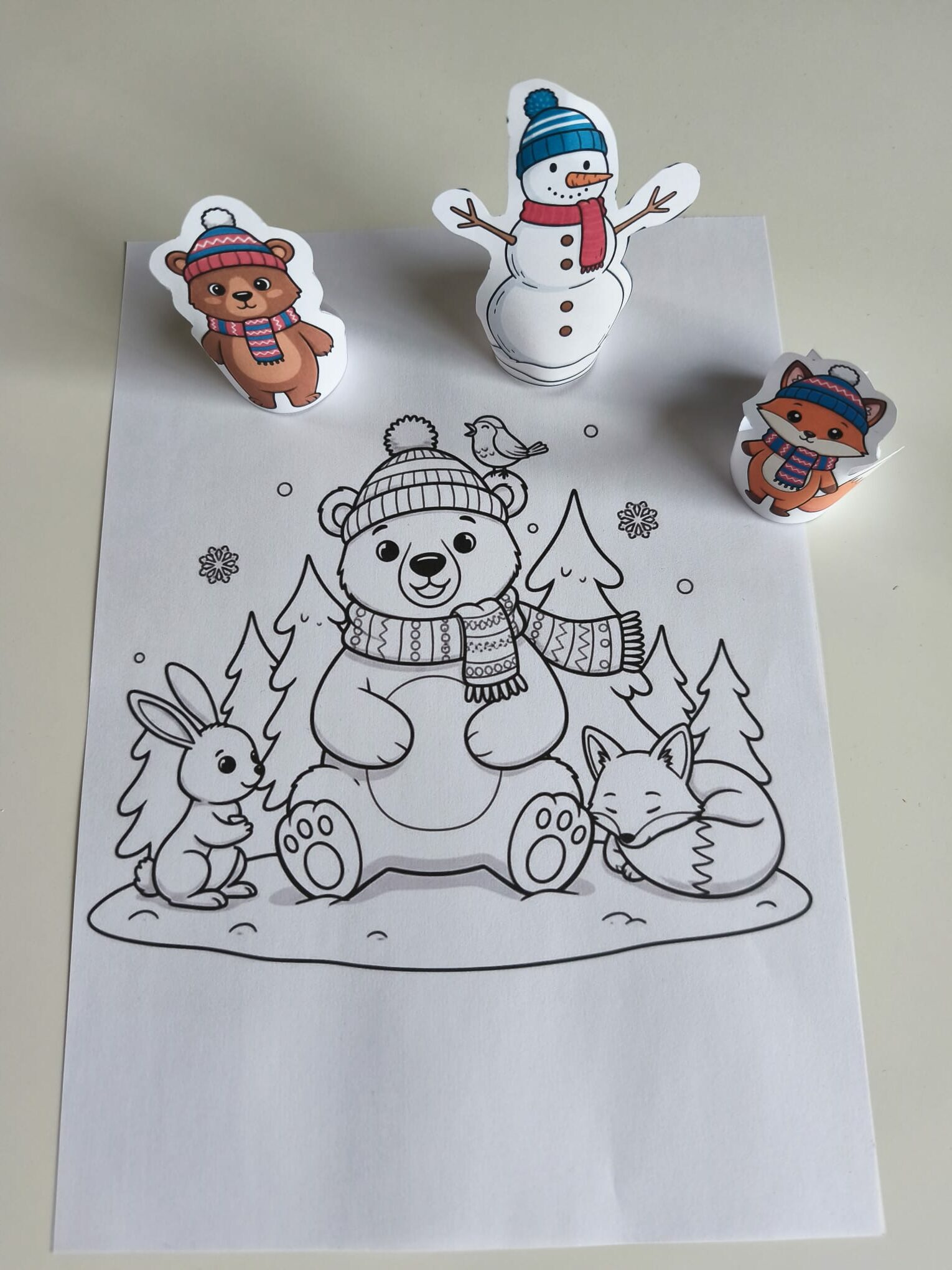 Thèmes : Hiver (Bonhomme de Neige, animaux) et Tradition (Galette des Rois).
