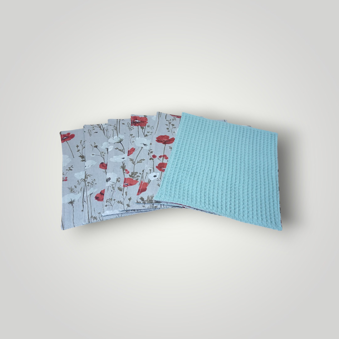 * 6 essuie-tout lavables de 21 x 24 cm.
