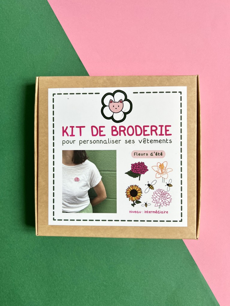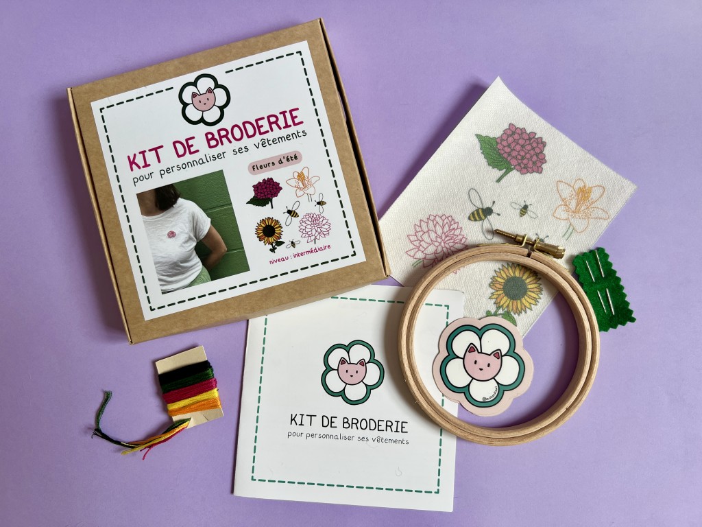 Envie d’apporter une touche de printemps à vos vêtements et accessoires ? Le kit de broderie Fleurs d’été de Le chat fleuri est conçu pour vous permettre de personnaliser facilement vos textiles avec des motifs fleuris, tout en vous initiant à la broderie.