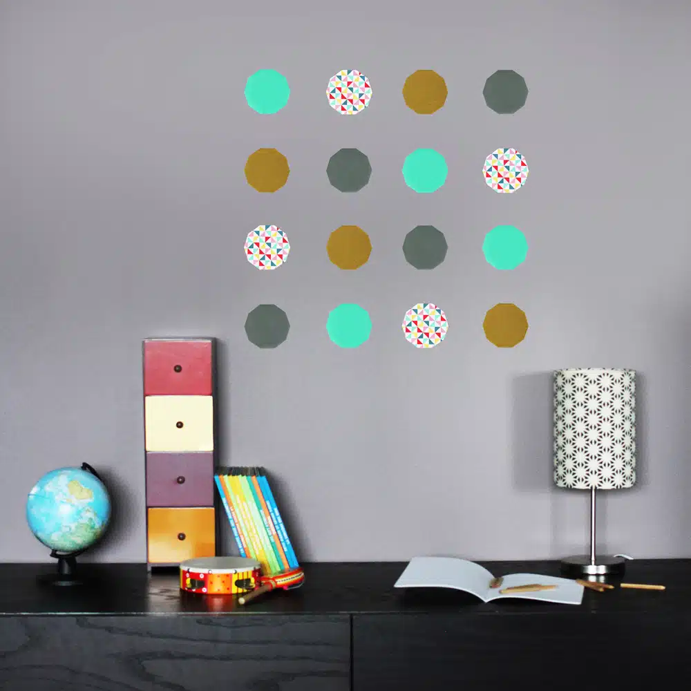 Un pochoir est fourni pour vous faciliter la pose des stickers pour le choix d’une composition rythmée et régulière.