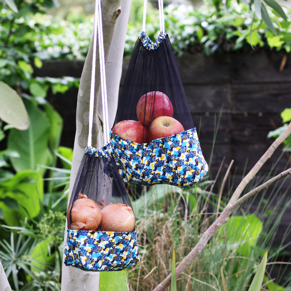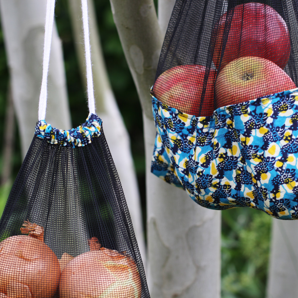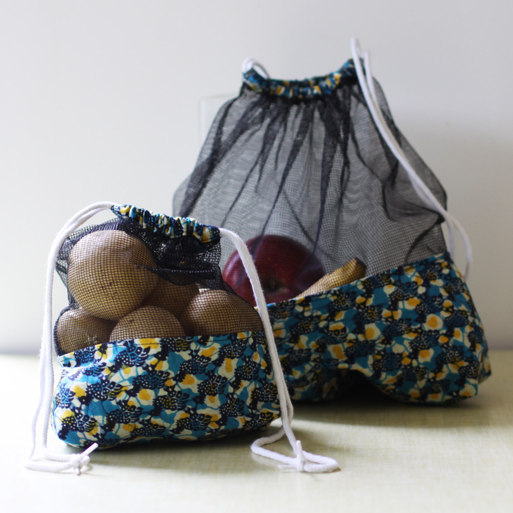 Les sacs à provisions sont pratiques: Ils sont en tissu wax à la base pour sa résistance et en filet sur l’autre partie pour permettre de voir les produits.