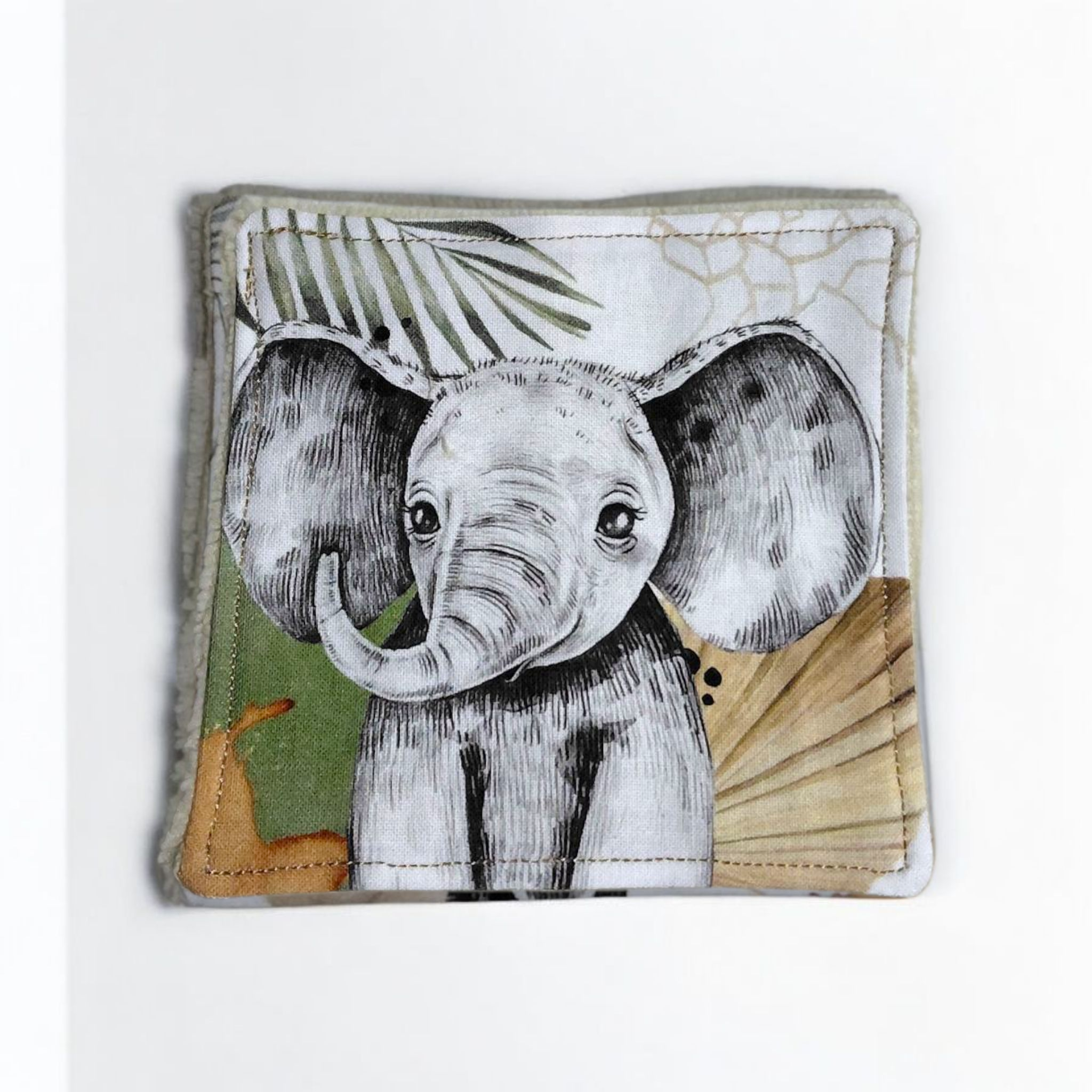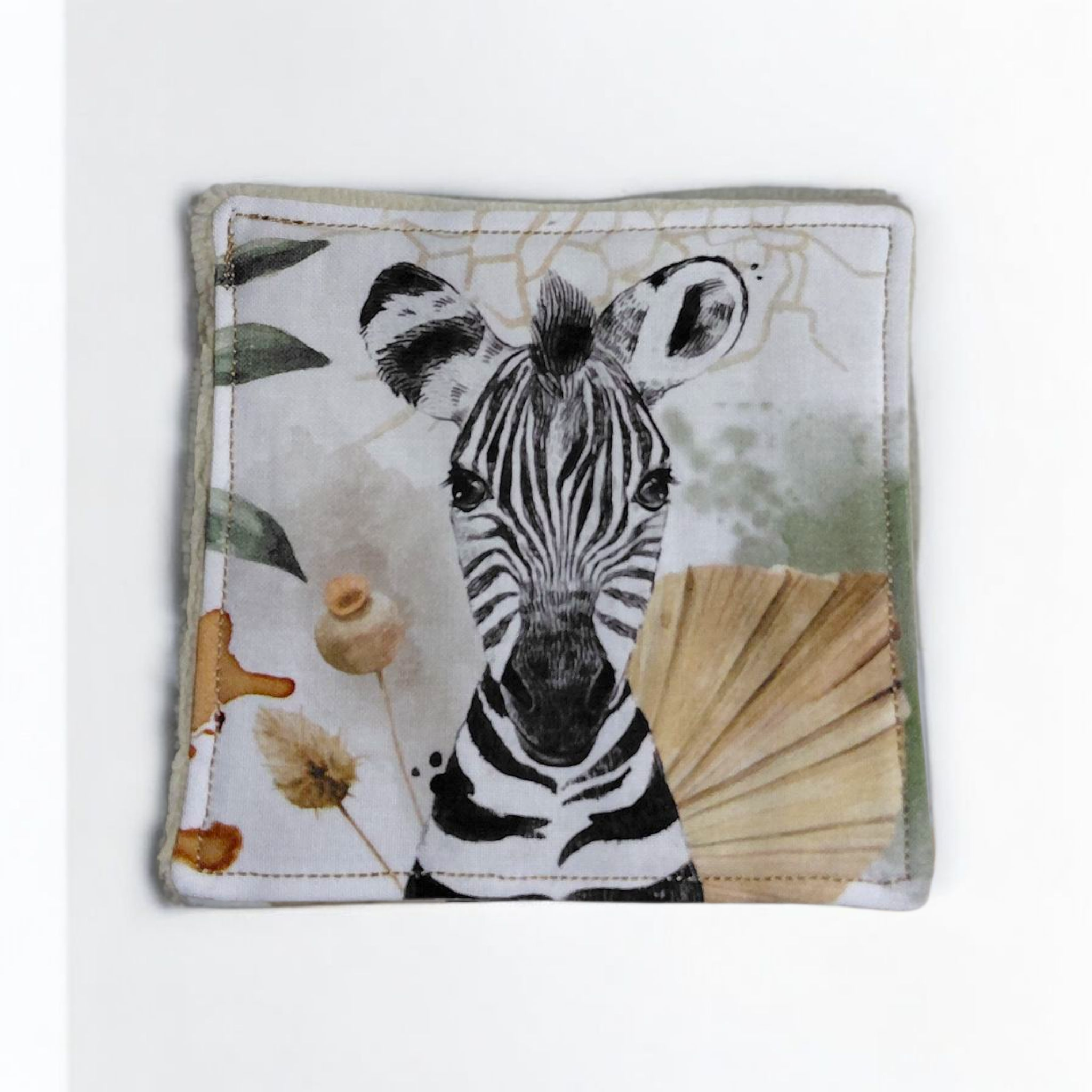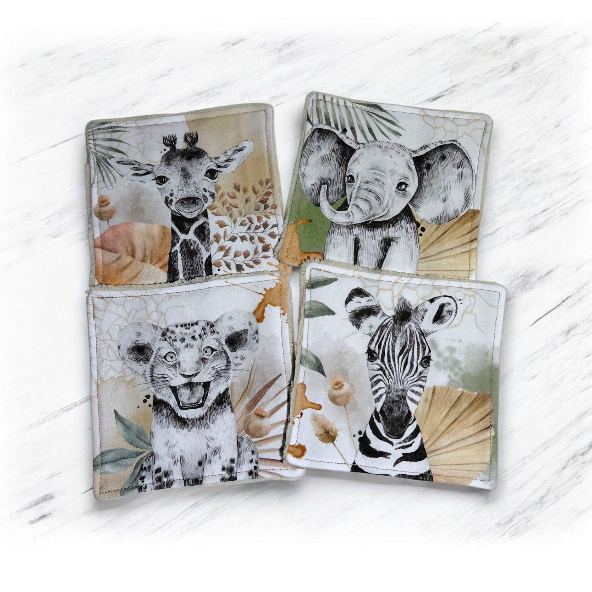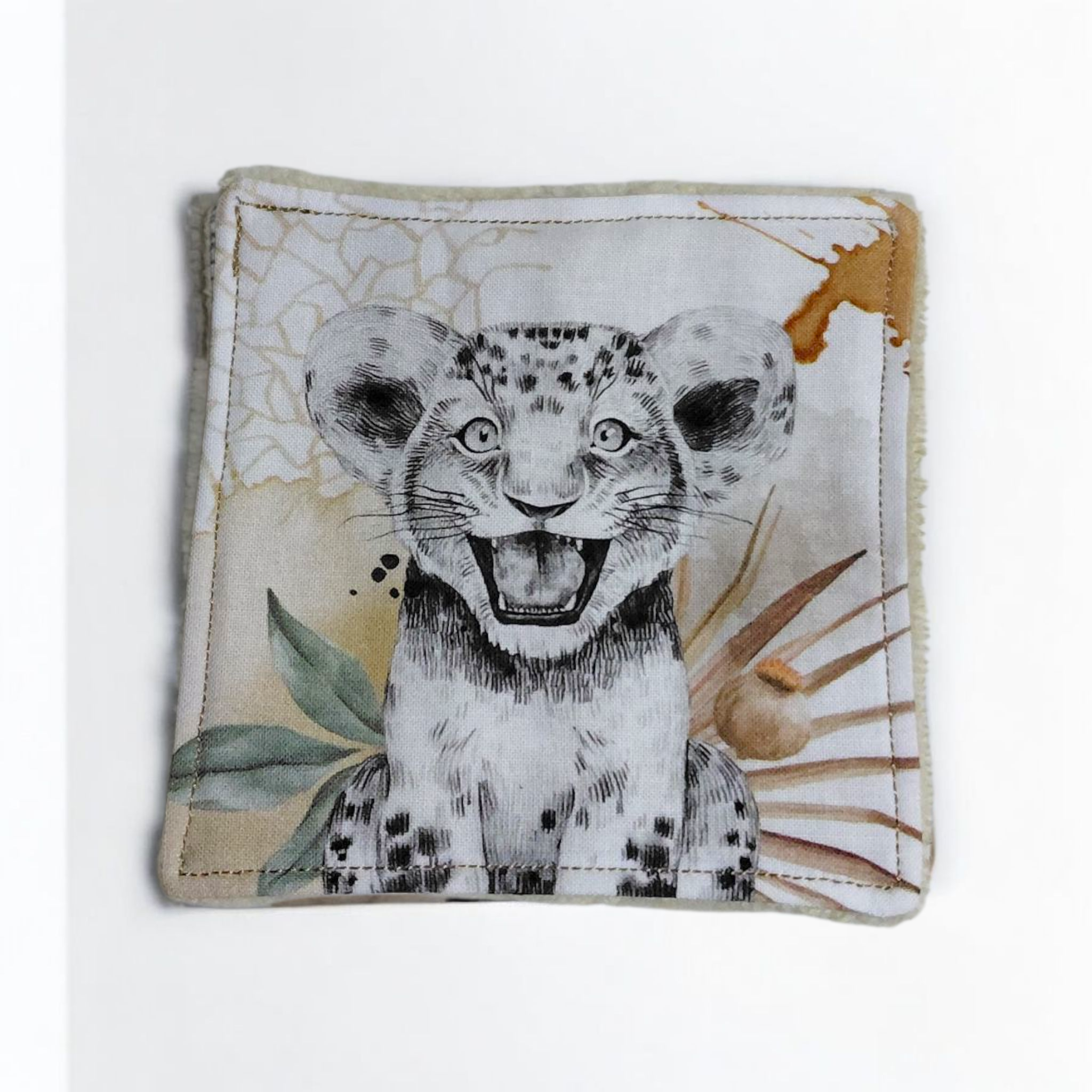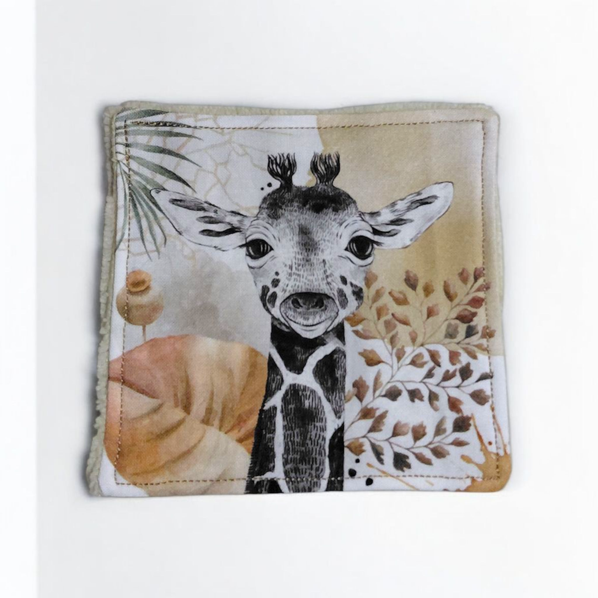 Découvrez ce lot de 4 lingettes lavables Collection Savane, confectionnées artisanalement dans mon atelier Naturel & Vert.