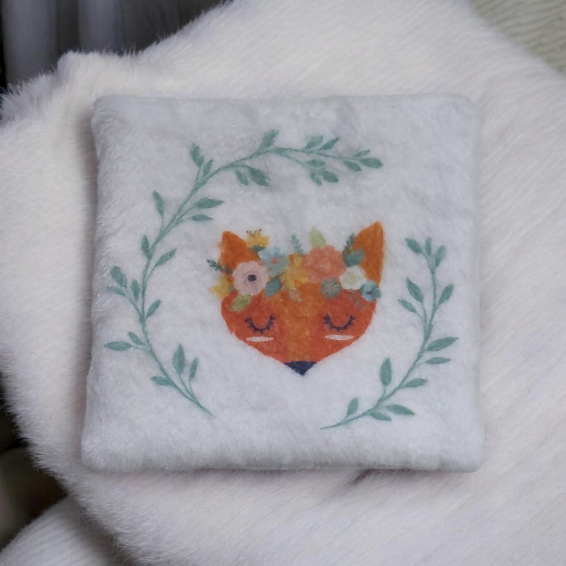 ✨ Une face en microfibre épaisse imprimée, très douce au toucher, avec de jolis motifs poétiques (renard, couronne, feuillage…)