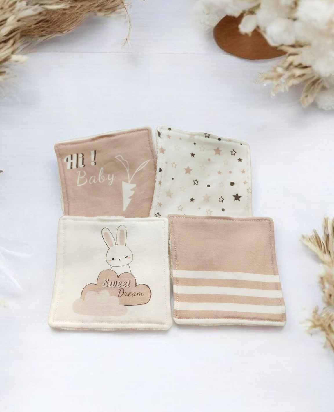 Offrez à votre bébé des soins tout en douceur avec ce lot de 4 lingettes lavables fait main. Conçues en tissu imprimé en France et certifiées Oeko-Tex, elles sont sûres pour la peau sensible des tout-petits. Pratiques et réutilisables, elles allient confort, style et respect de l’environnement. Parfaites pour le change, le visage ou les petites mains, ces lingettes aux couleurs pastels apportent douceur et tendresse à chaque utilisation.