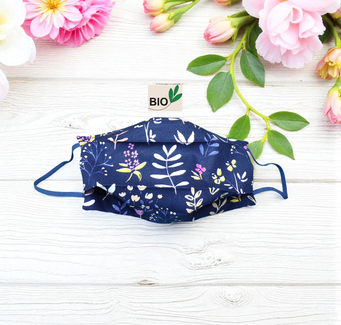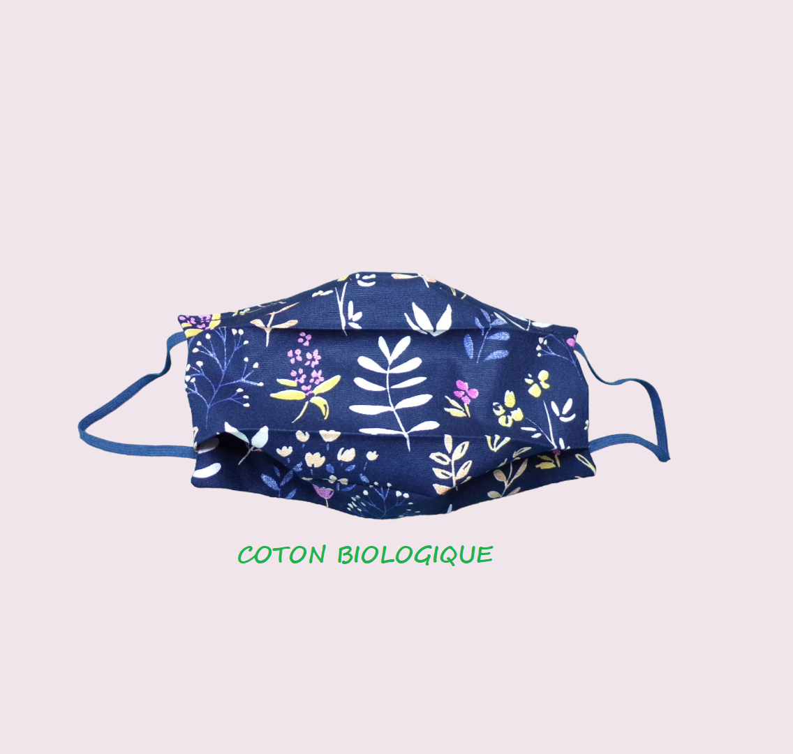 Ce masque – écran est fabriqué artisanalement à base de coton bio cousu en double épaisseur, il est lavable et réversible afin de pouvoir le porter de deux manières.