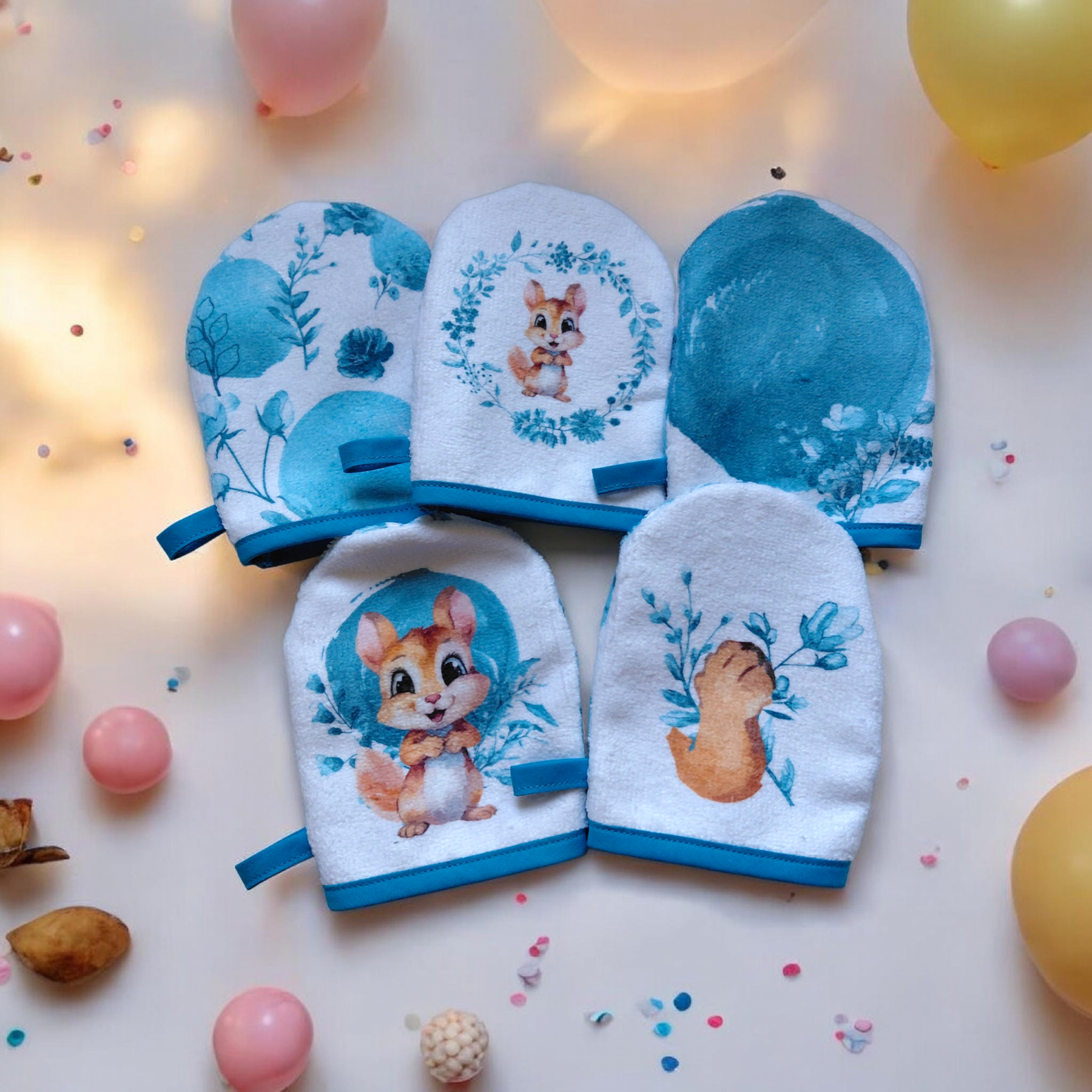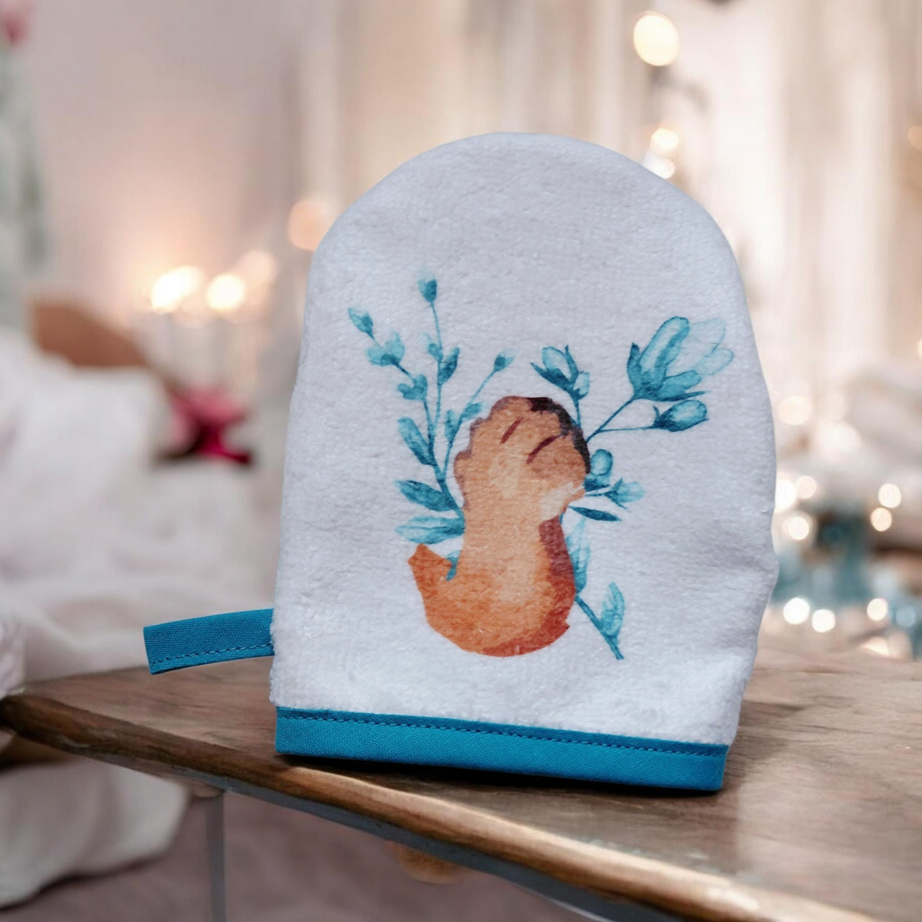 Apportez douceur et poésie au moment du bain avec ces mini gants de toilette faits main, spécialement conçus pour les petites mains et la peau délicate des bébés.