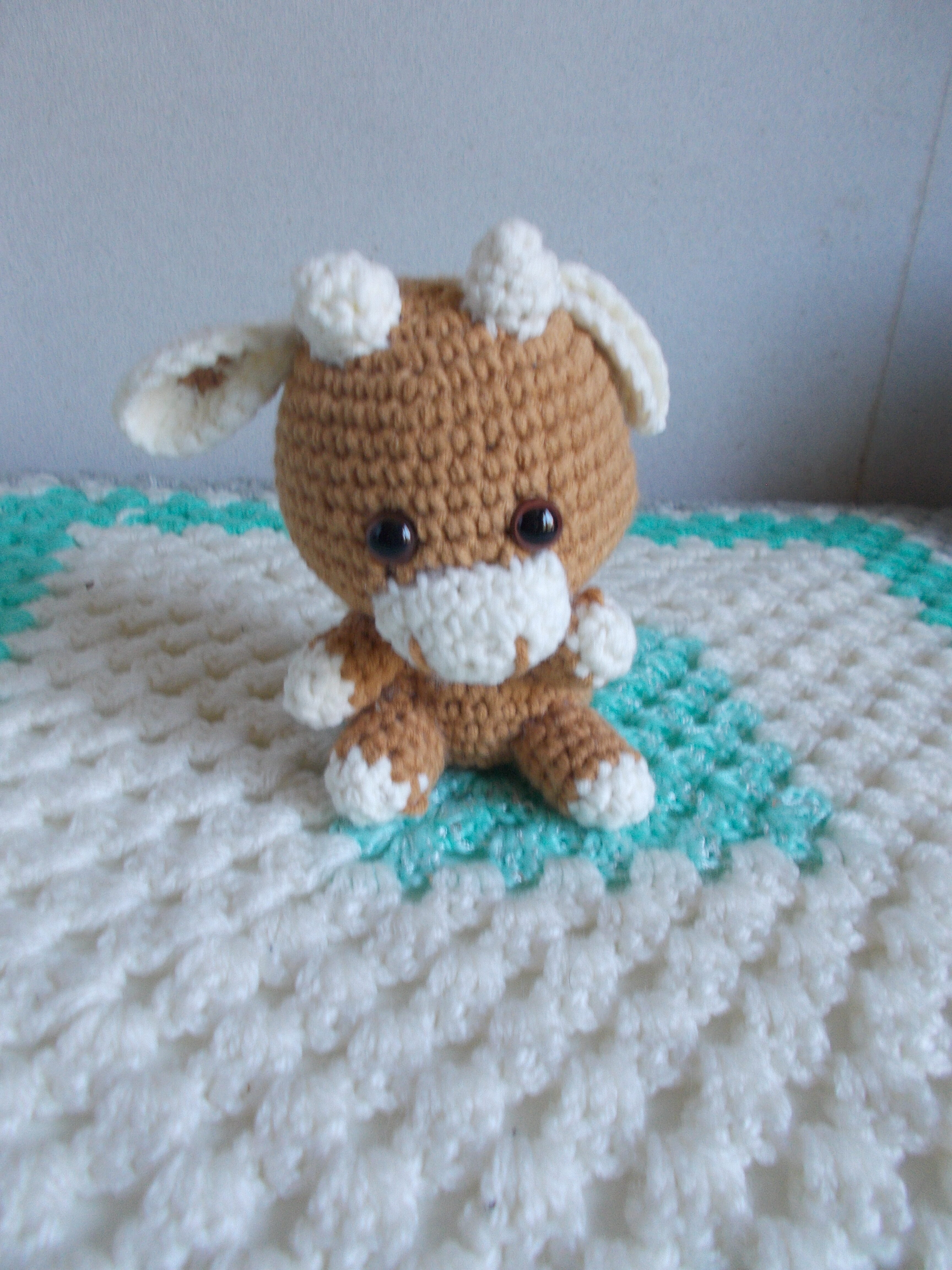 Petite vachette crocheté en acrylique ou avec la gamme “Graine Créative”, différentes couleurs, avec des yeux sécurisés et une hauteur de 11 cm.