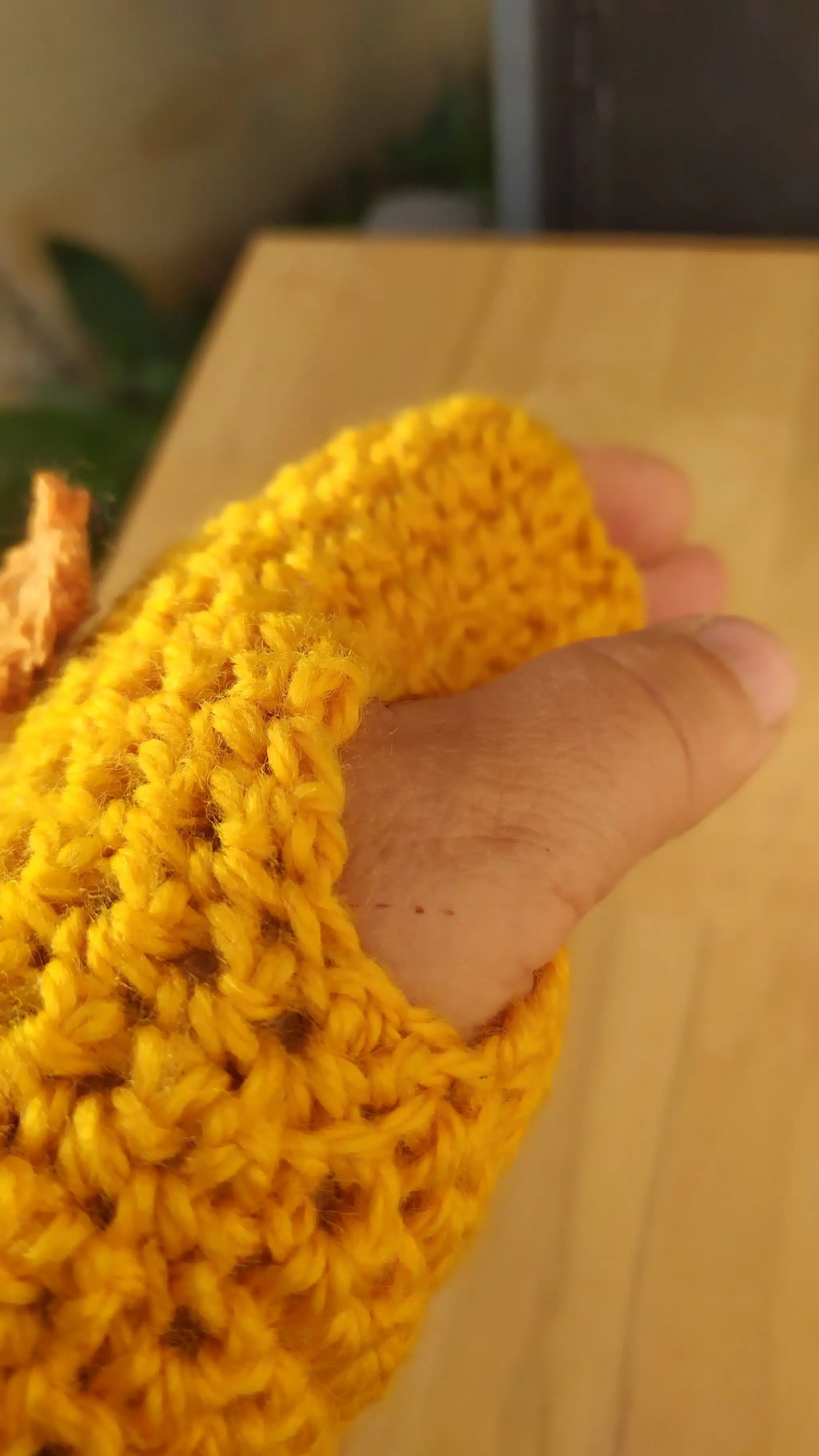 Mitaines faites au crochet avec une laine française ( Bergère de France).