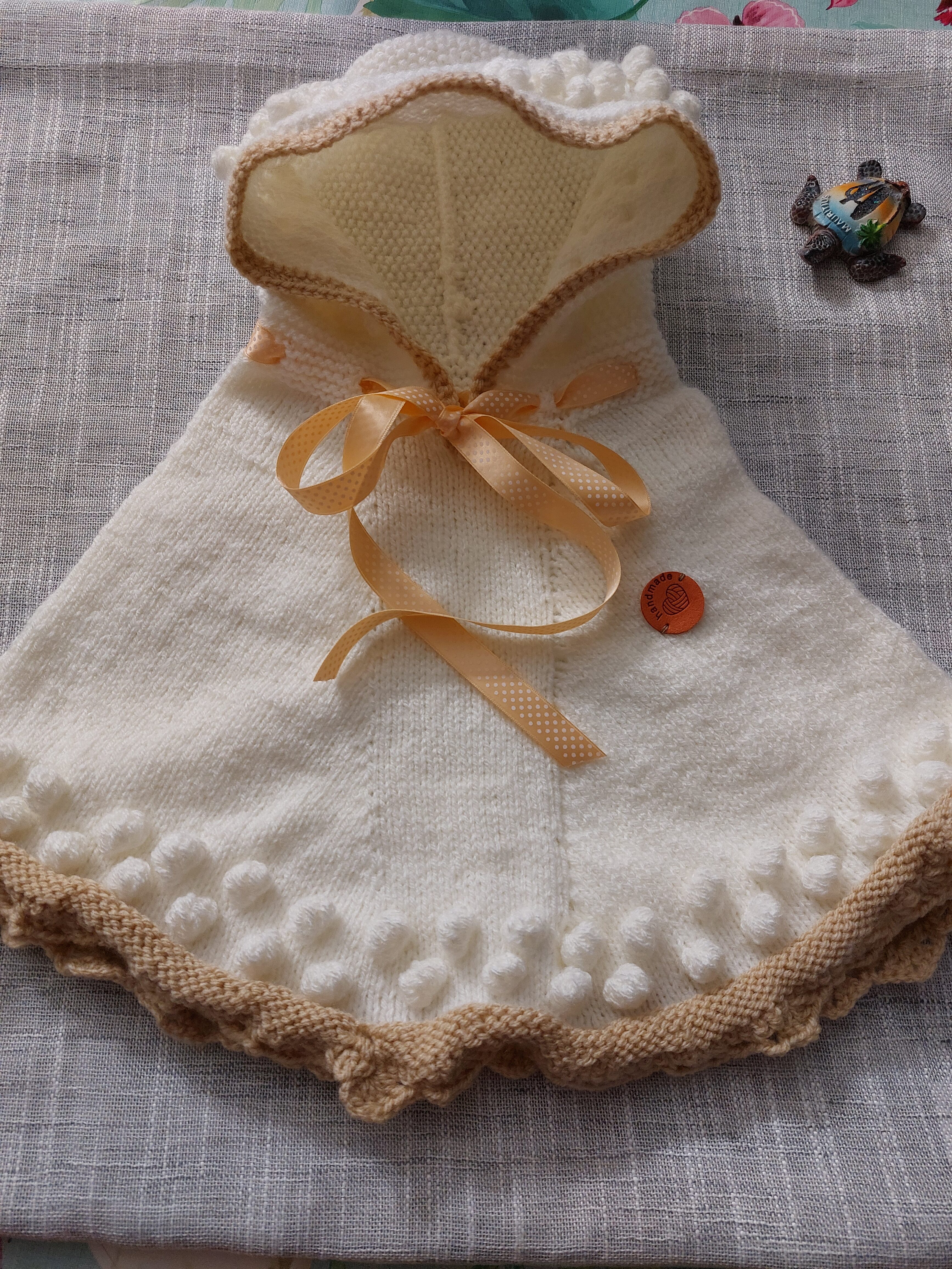 joli pancho, avec capuche entièrement tricoté à la main, réalisée aux aiguilles avec beaucoup de soin.