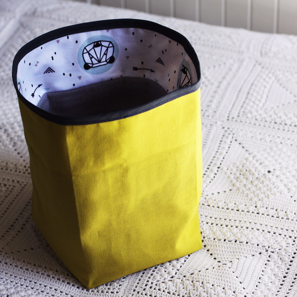 Un 2 Dimensions possibles: -15 x 16 x 15 cm ou 21 cm de hauteur. Coloris et matériaux: – Tissu en coton épais jaune. N’hésitez pas à me contacter pour toutes informations complémentaires. |