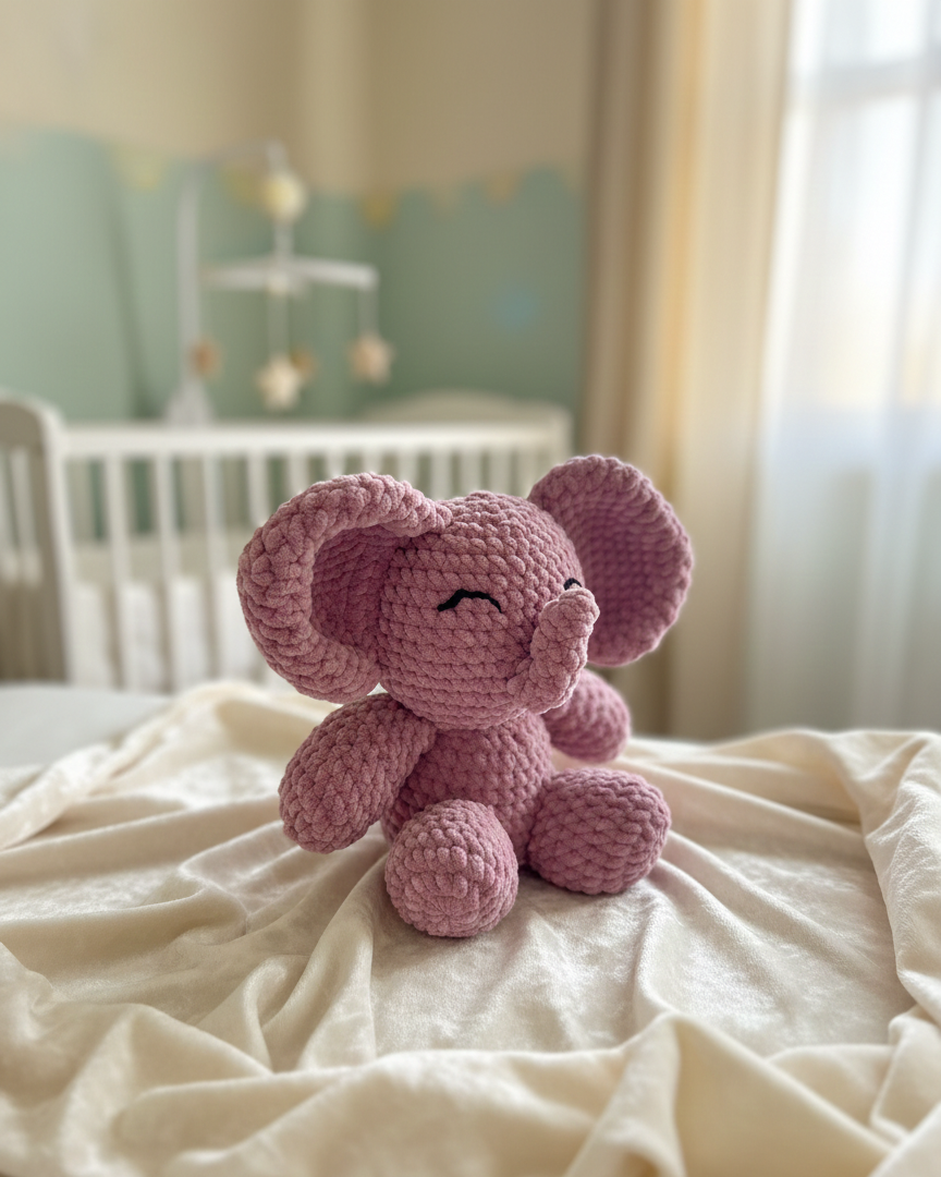 Laissez-vous séduire par notre adorable petit éléphant au crochet, une création faite main conçue pour devenir le meilleur ami de votre enfant. Grâce à son fil velours ultra-doux, il offre une expérience sensorielle unique, parfaite pour apaiser et réconforter les tout-petits. Ses grandes oreilles et son sourire brodé en font un cadeau aussi mignon que sécurisant.