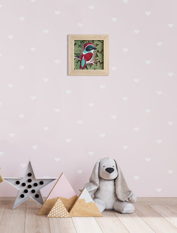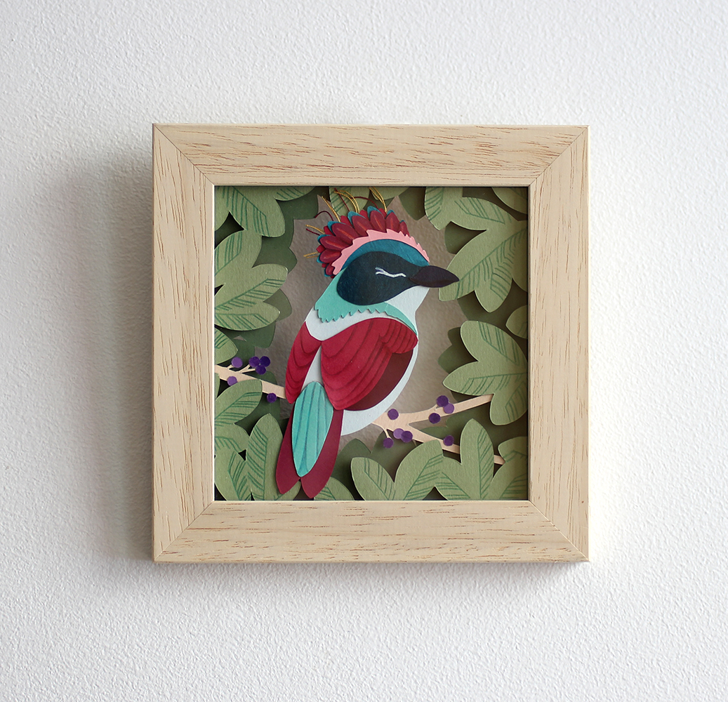 Illustration originale finement découpée à la main, avec ajout de dessin au crayon de couleur.