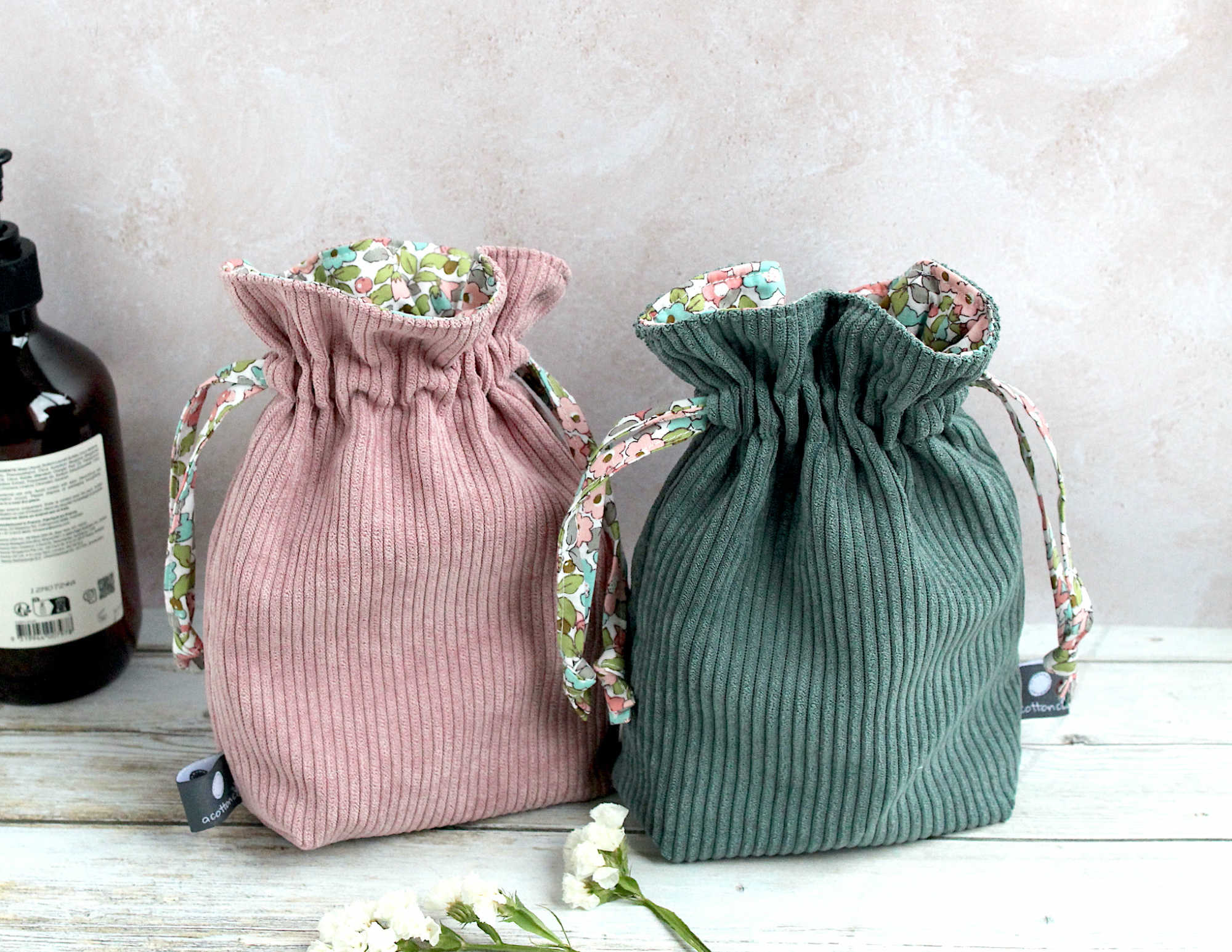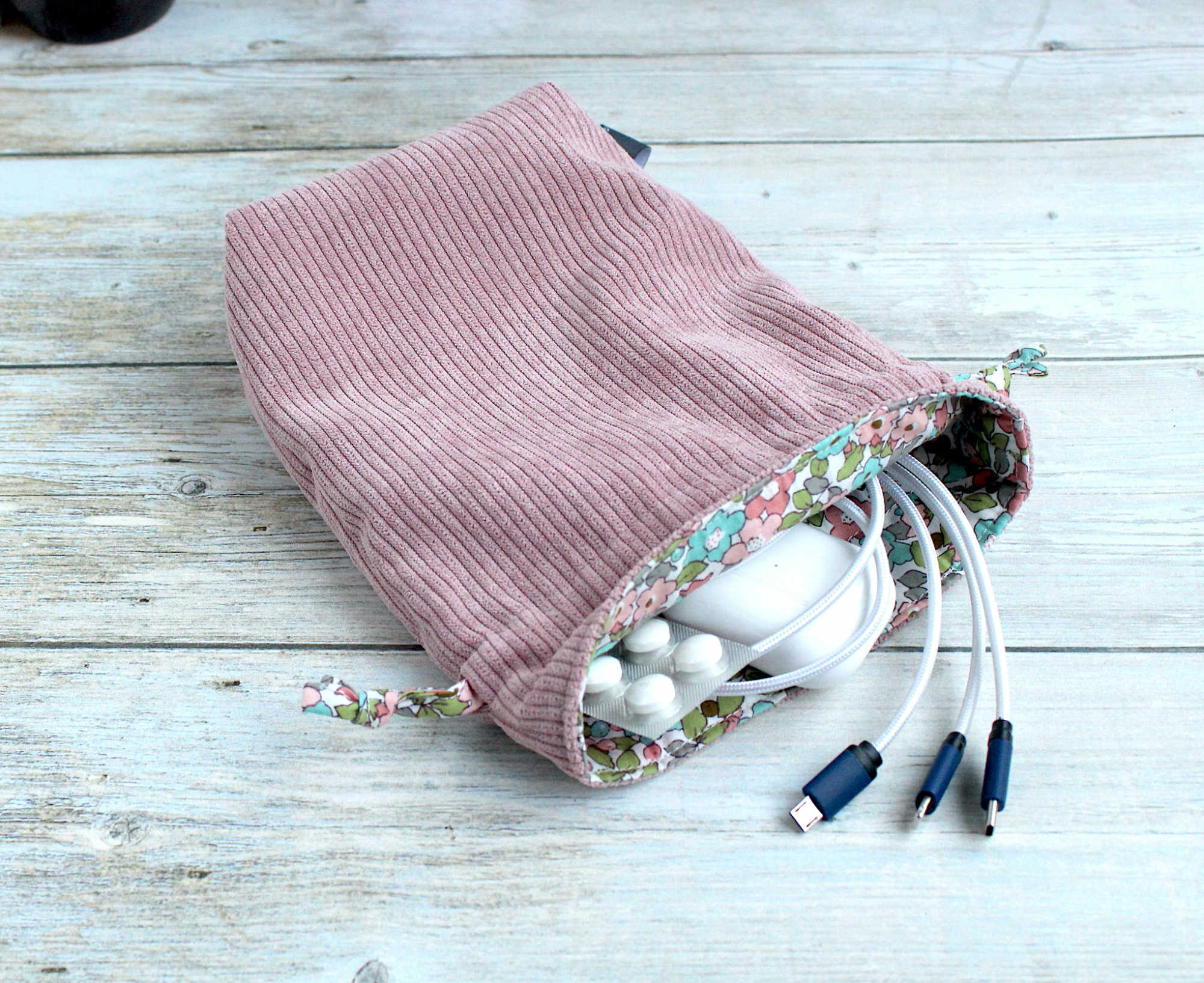 Bourse pochon en tissu pour accessoires: cables et écouteurs, médicaments, petites pelotes de laine ou simplement pour ranger vos articles de maquillage.