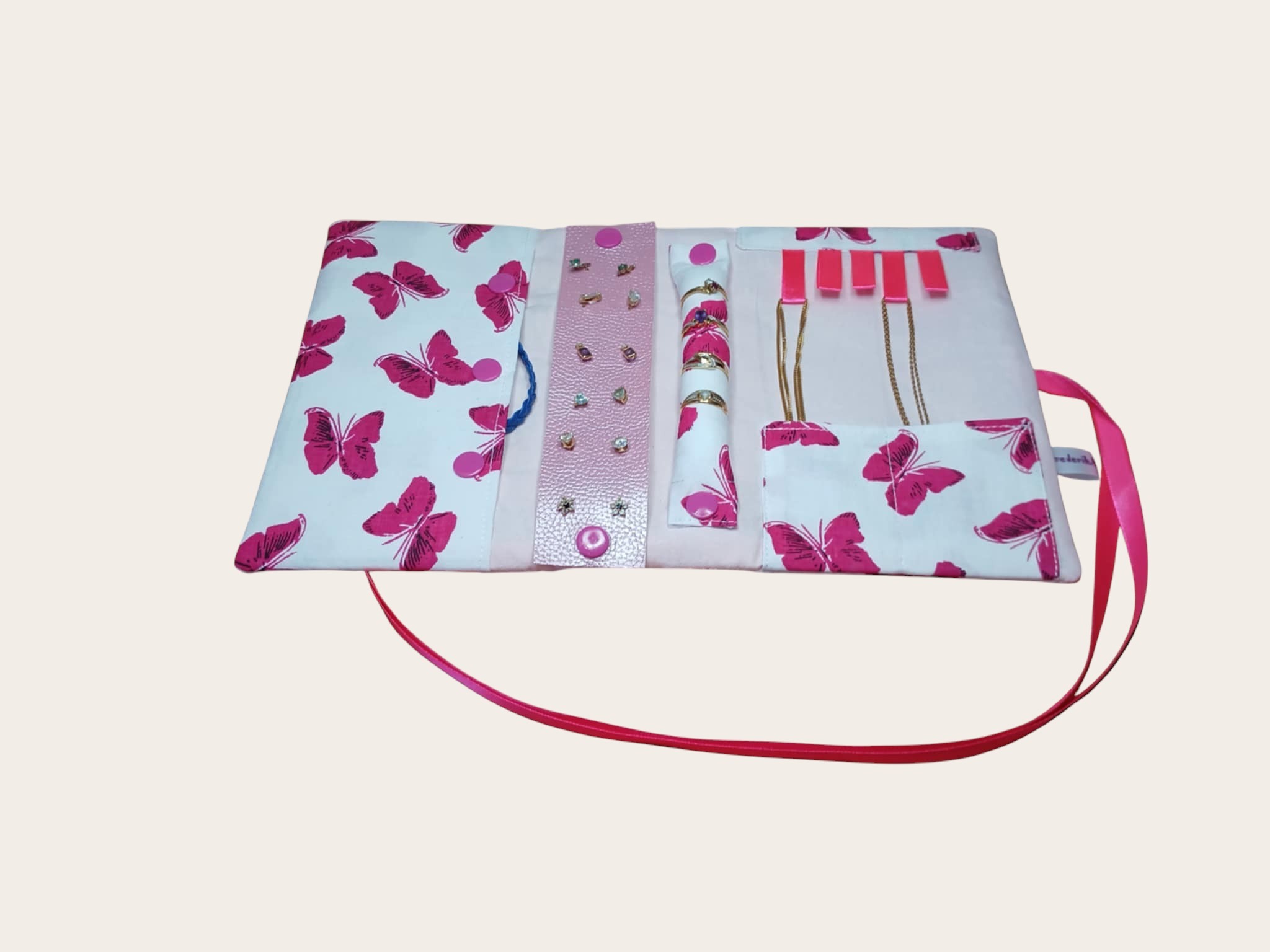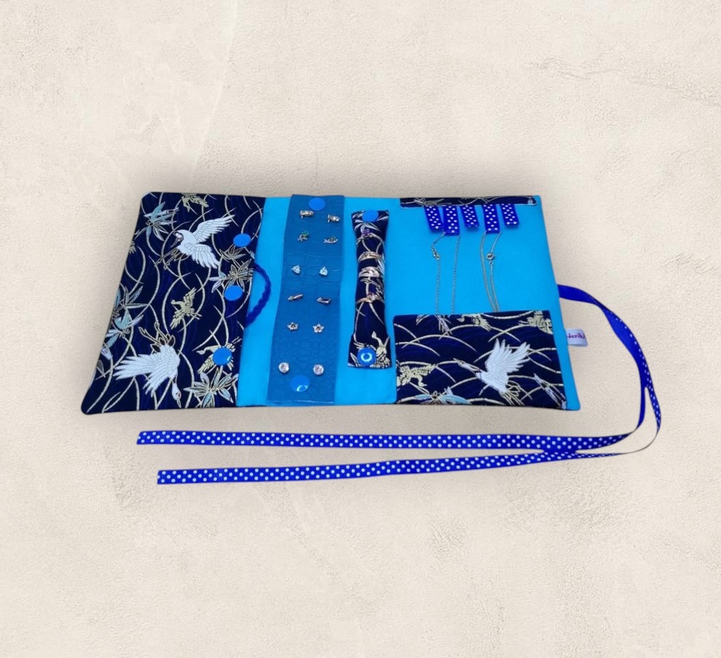* une poche pour colliers accrochés sur des petits rubans