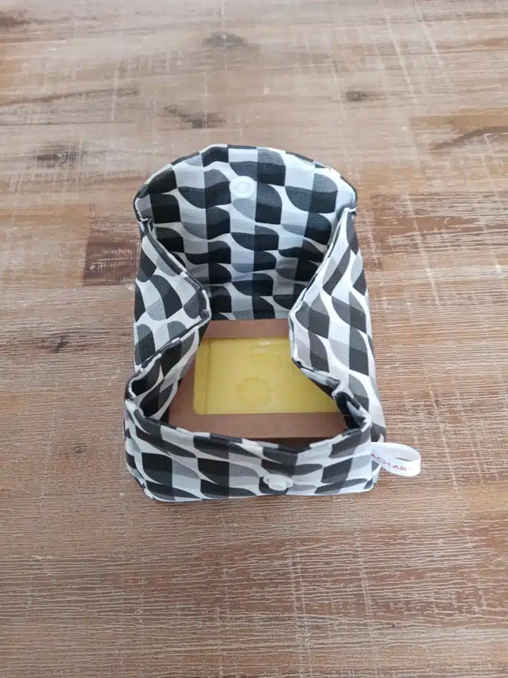 Pochette à savon imperméable en coton enduit intérieur et extérieur.