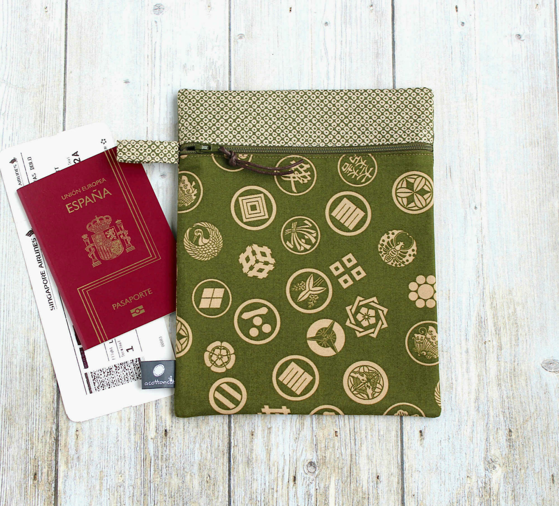 Pochette japonaise plate zippée, porte documents de voyage (passeport, billets d’avion..), porte livre ou organisateur de sac … pochette multi fonctions!
