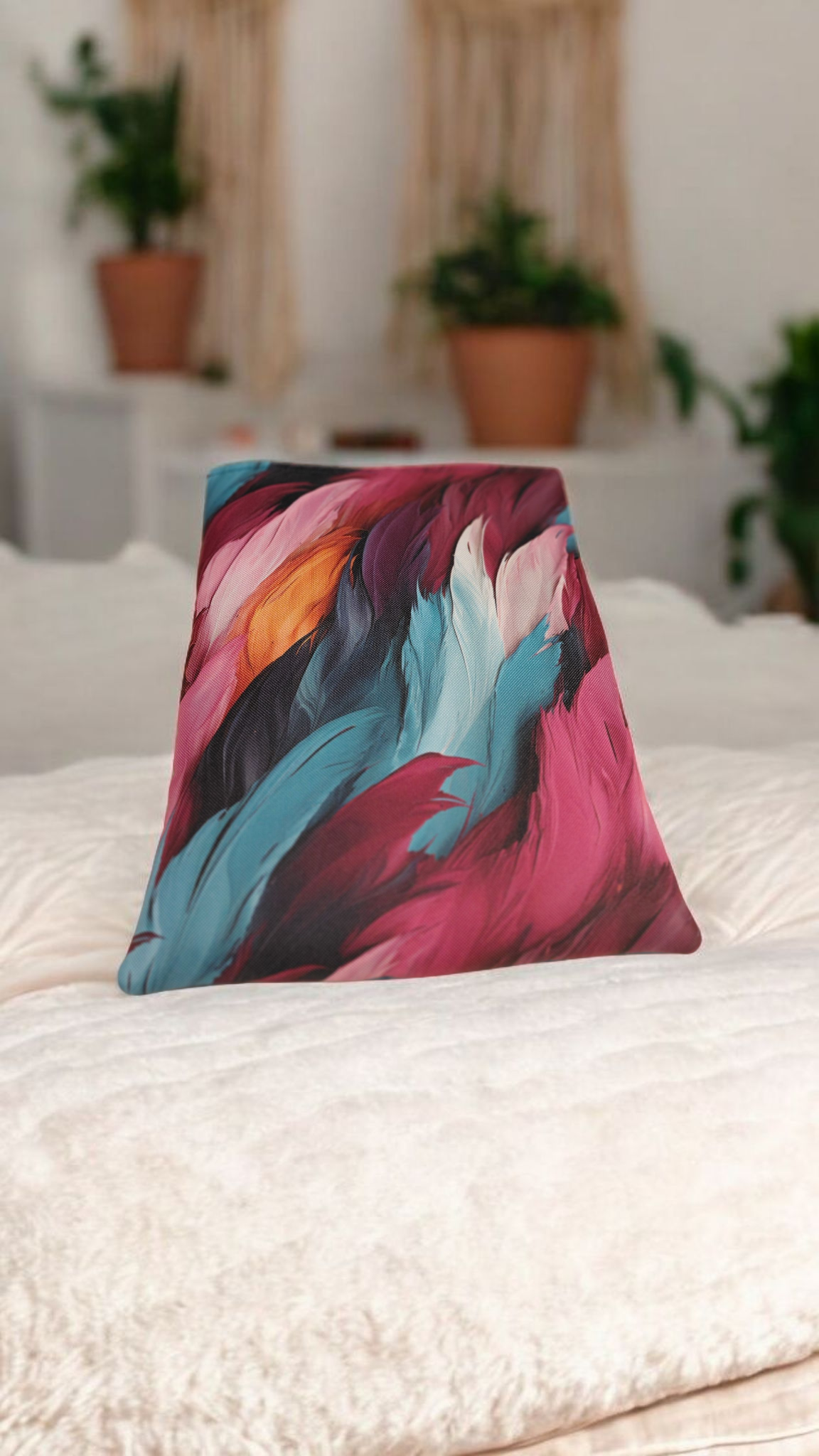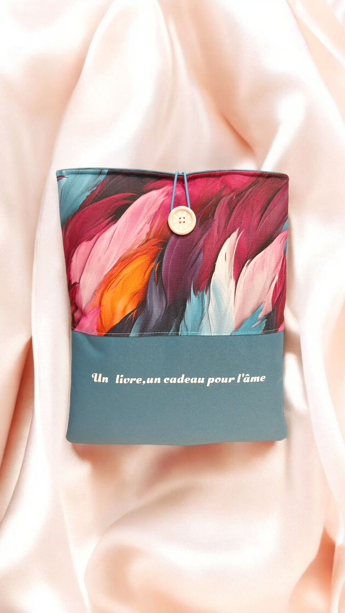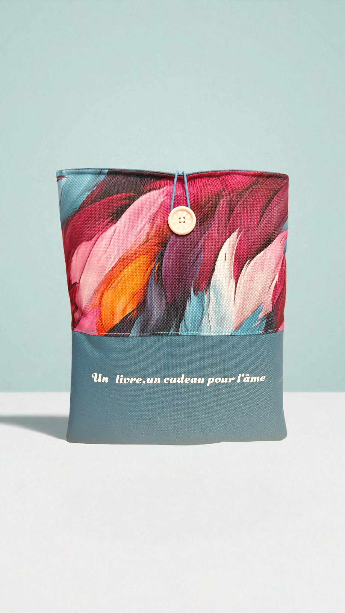 Craquez pour cette pochette faite main au design poétique : le tissu imperméable motif plumes colorées apporte une touche artistique et unique à chaque pièce.