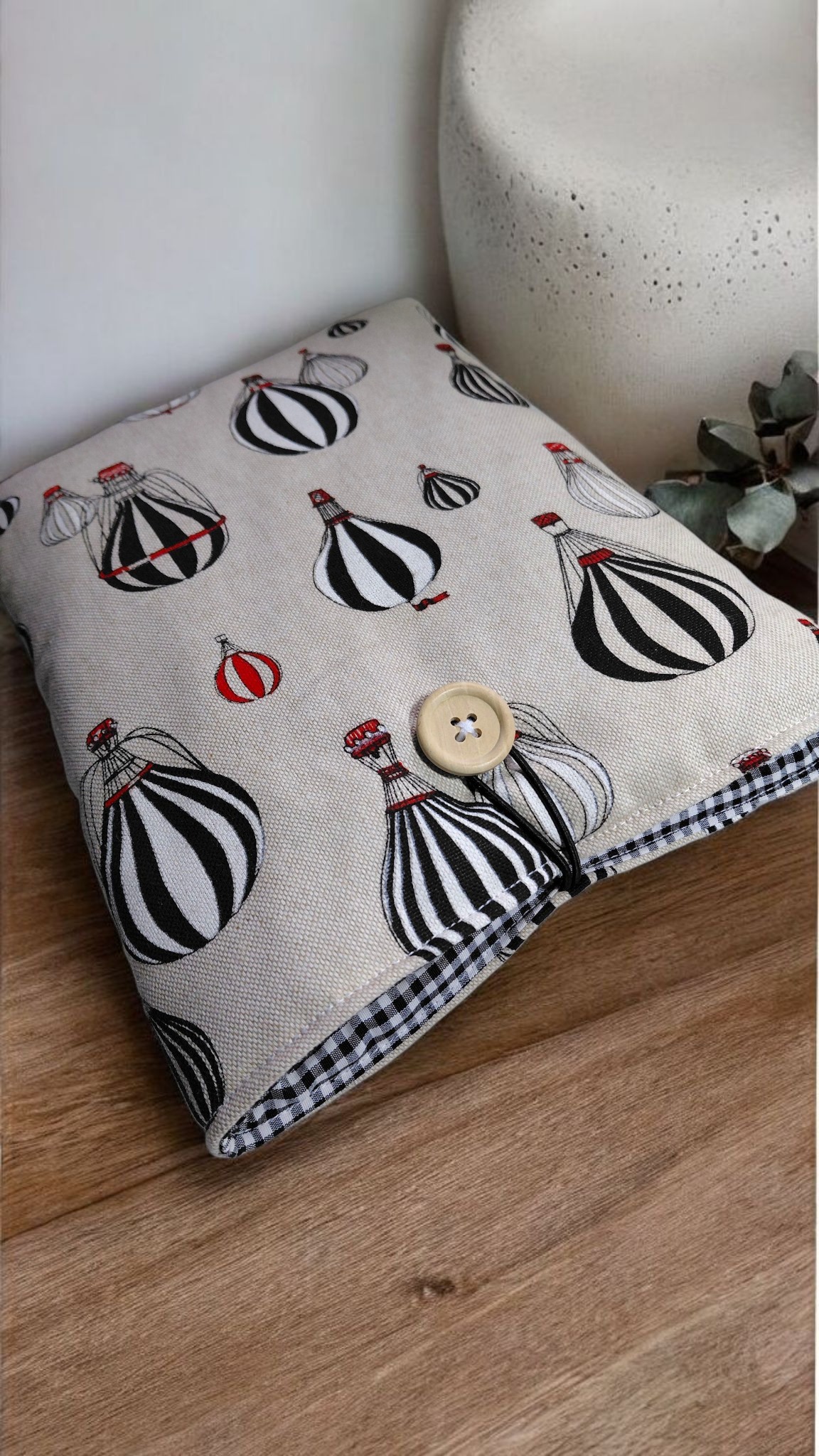 Voyagez léger et en douceur avec cette jolie pochette protège-livres, tablettes et liseuses fait main.