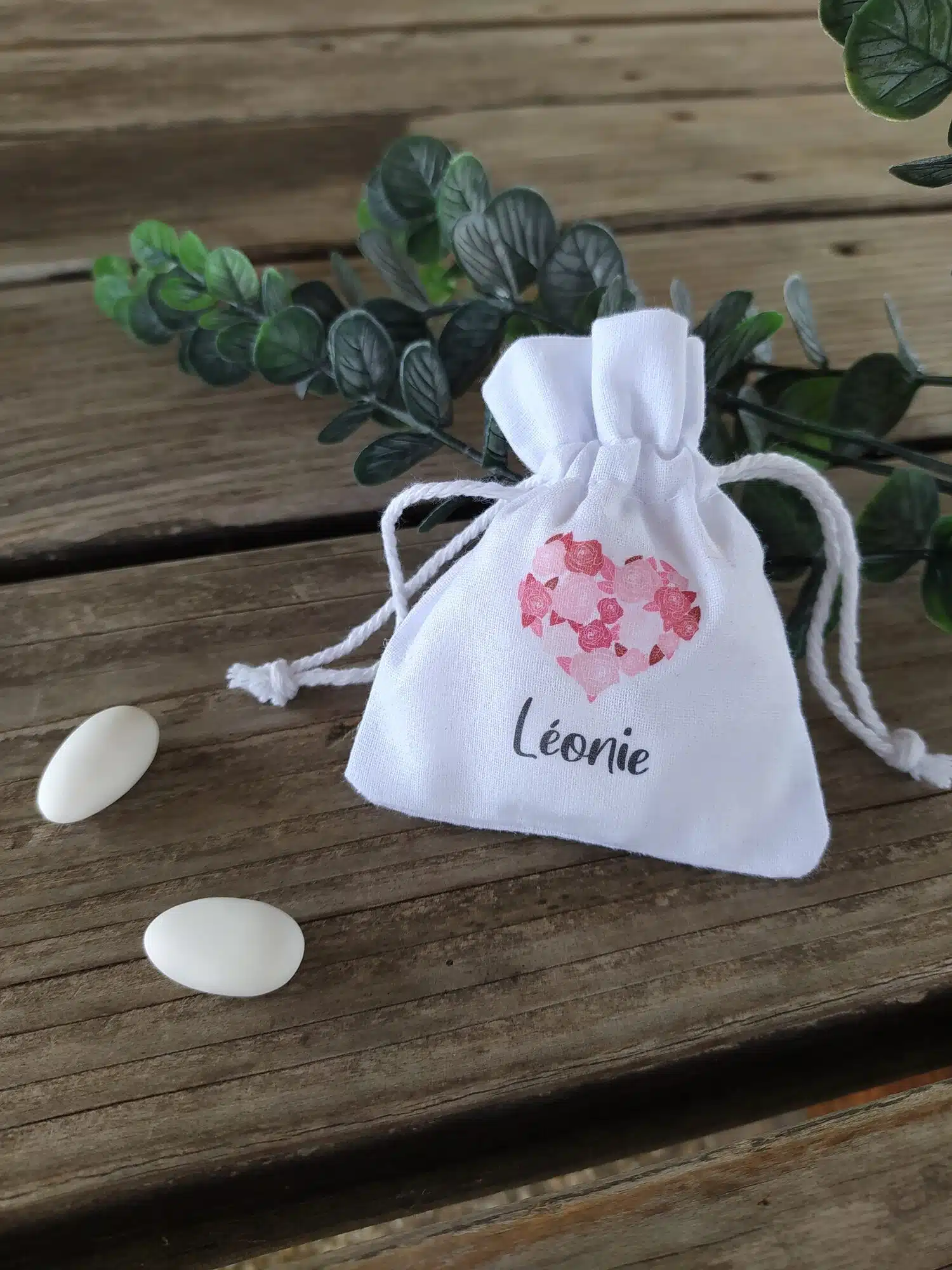 Je vous propose de personnaliser de jolis pochons en coton avec liens de serrage. Ils seront parfaits pour y glisser des dragées, savon, figurines, chocolats, mini pot de confiture, confettis et tant d’autres cadeaux pour vos invités…