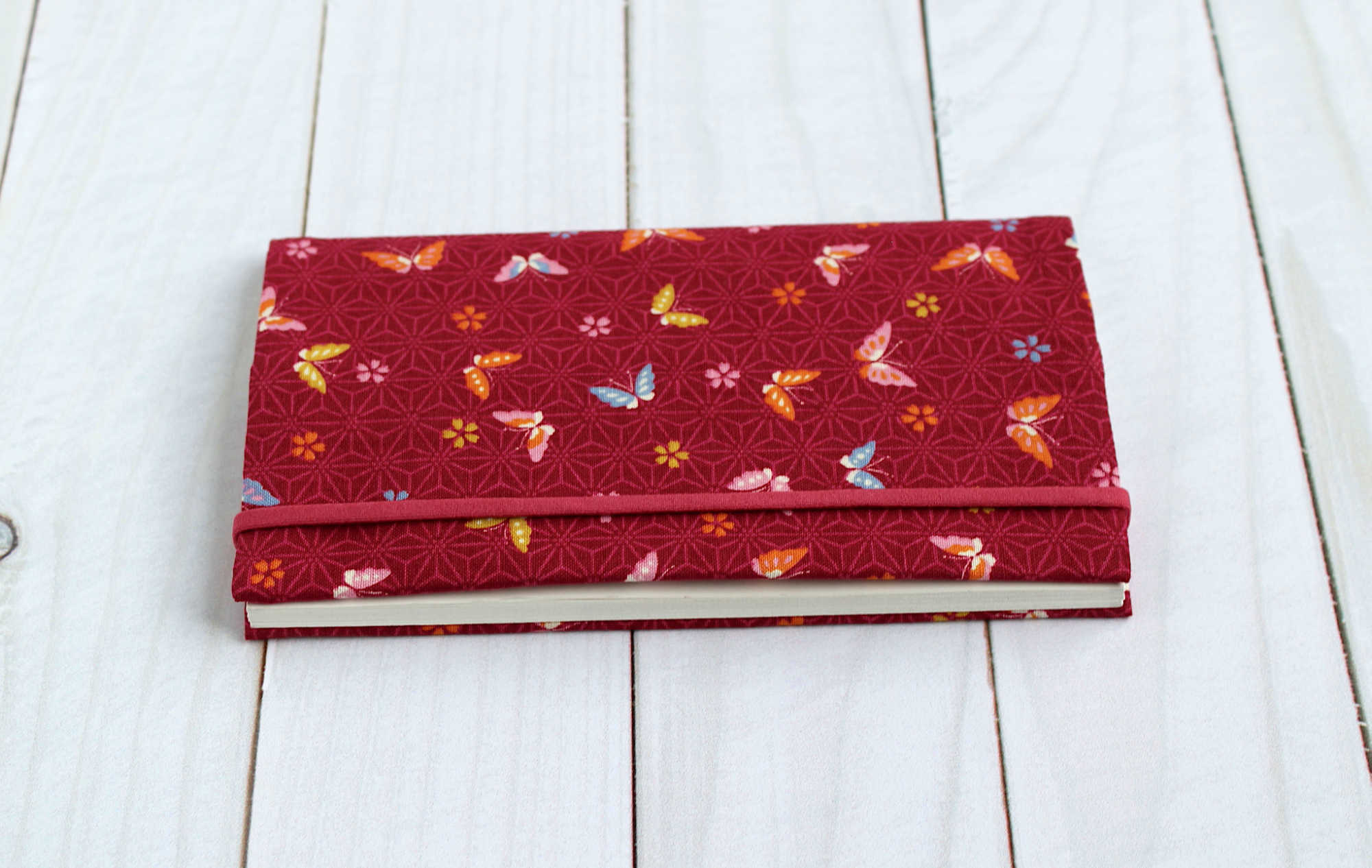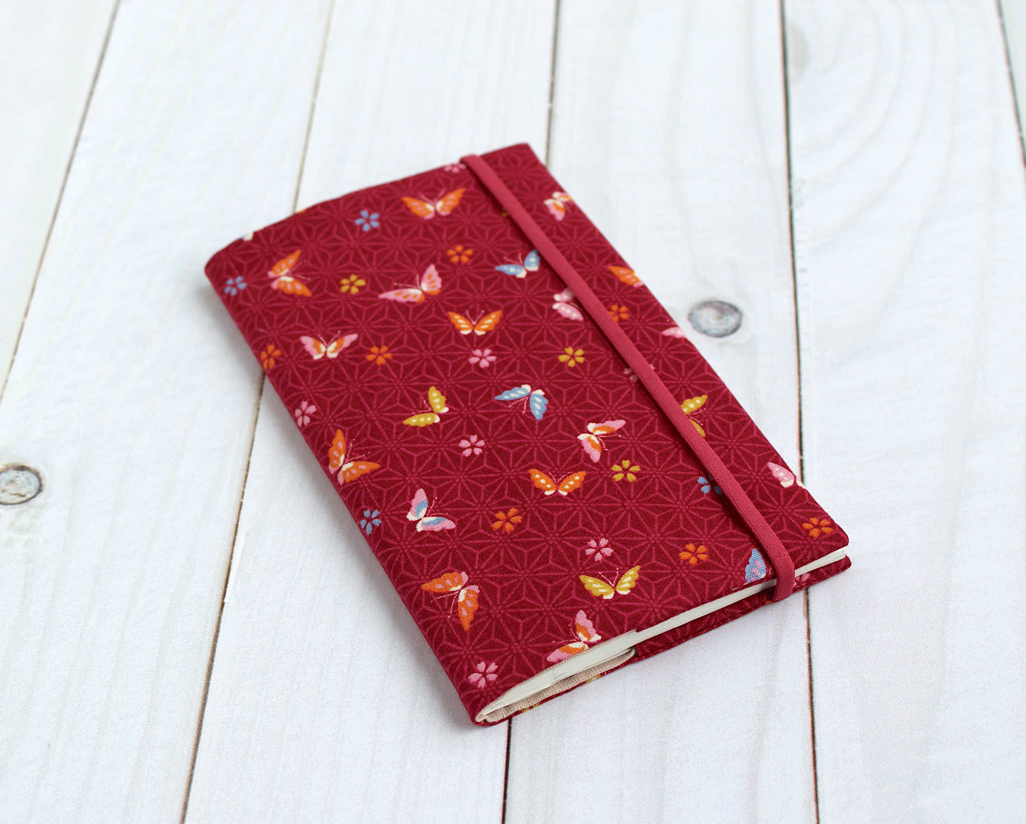 Protège chéquiers en tissu coton japonais à motif papillons multicolore. Housse japonaise pour chéquier. Pour homme et pour femme.