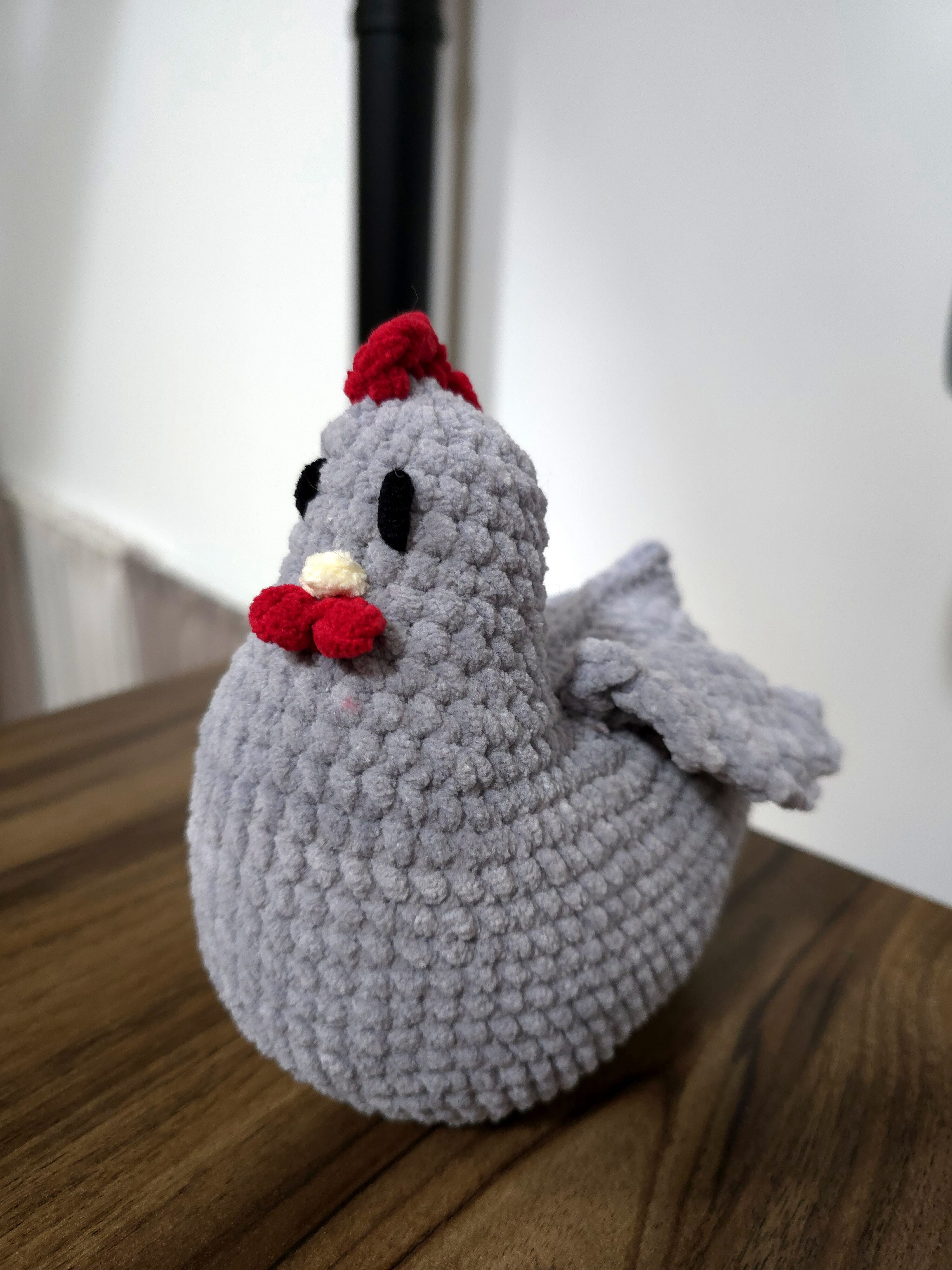 - Design Artisanal : Chaque poule est unique, réalisée avec soin et souci du détail (bec jaune, crête et barbillons rouges).
