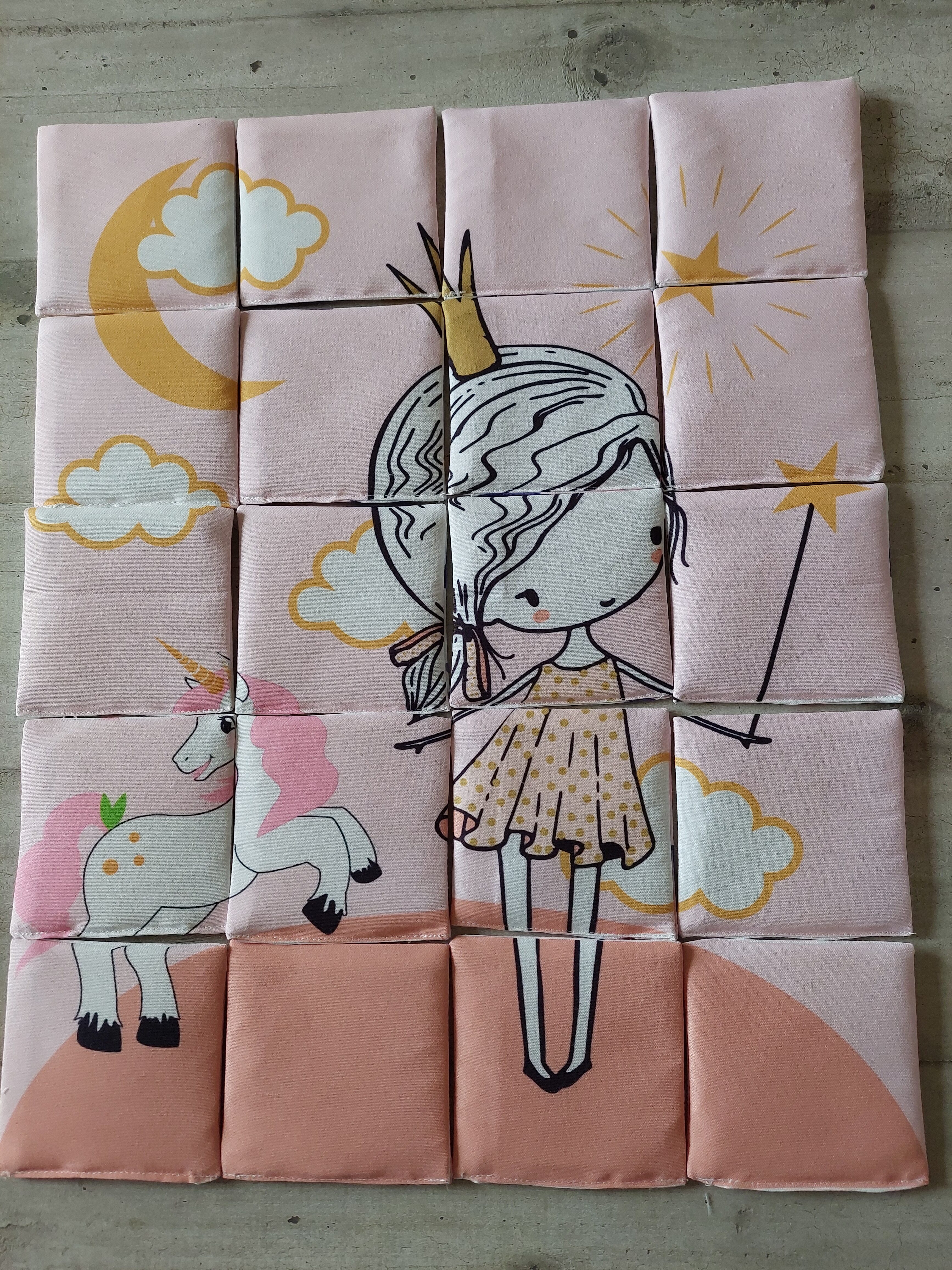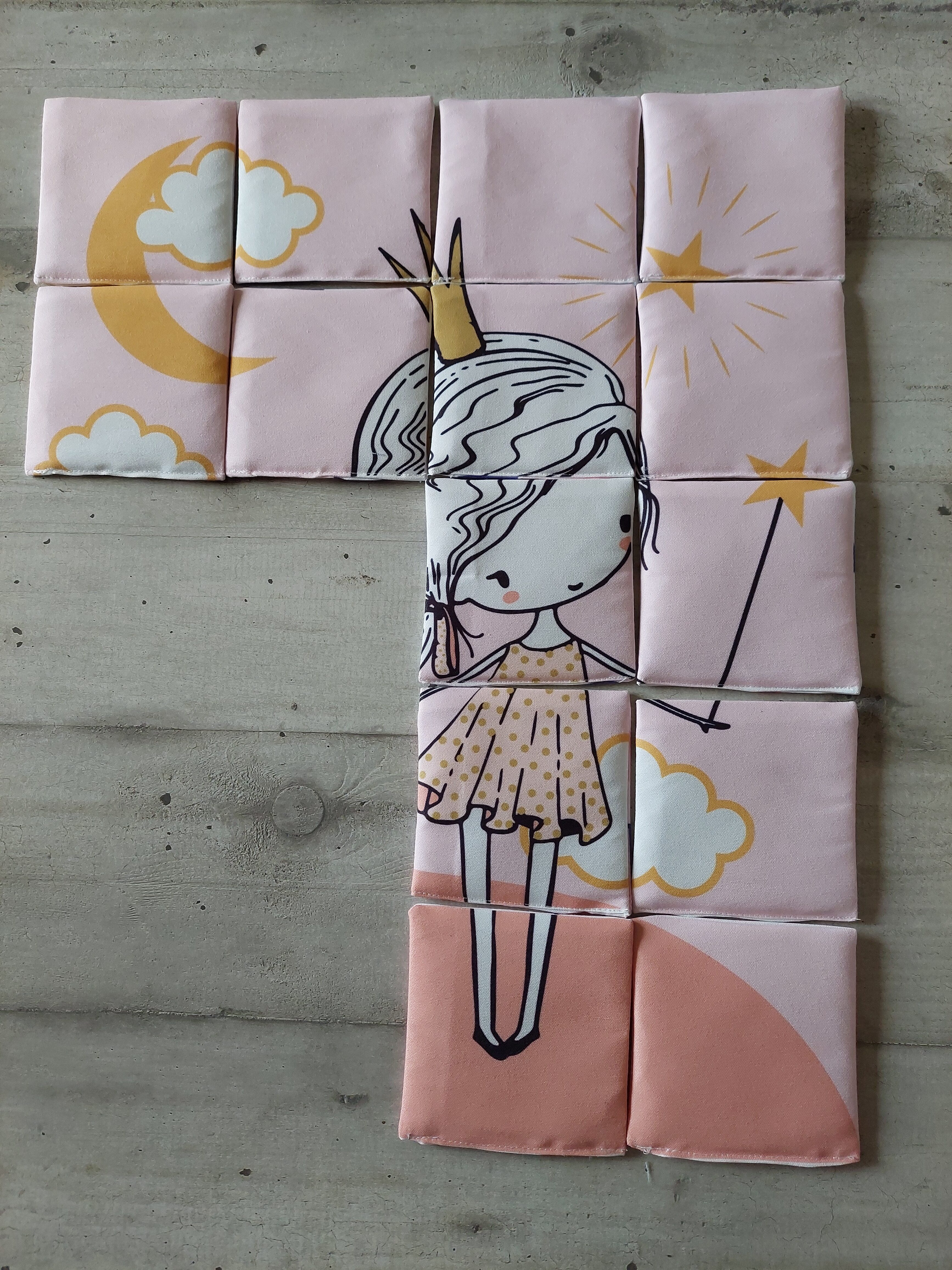Puzzle à emporter partout, constitué de 20 pieces en coton molletonné donc parfait pour les petits.